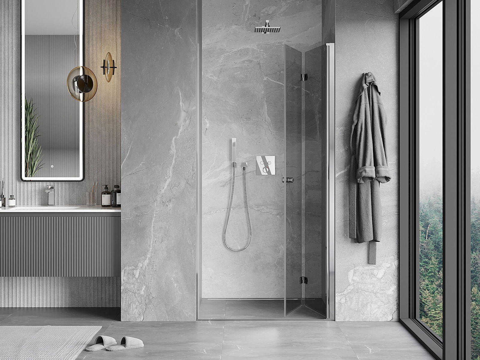 La possibilité de plier les portes, aussi bien vers l'extérieur que vers l'intérieur, permet de gagner plus d'espace lorsque la douche n'est pas utilisée. C'est une solution idéale pour les petites salles de bains, maximisant l'utilisation de l'espace disponible.