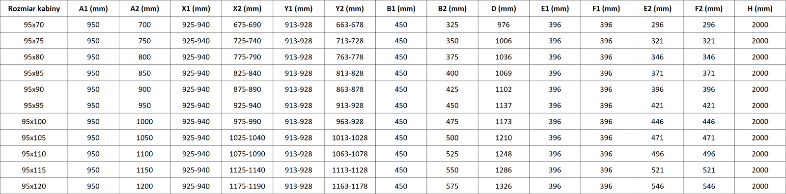Taille : 95x90 cm (porte gauche 95 cm, porte droite 90 cm)