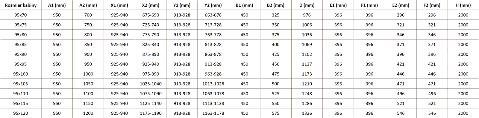Taille: 95x100 cm (porte gauche 95 cm, porte droite 100 cm)