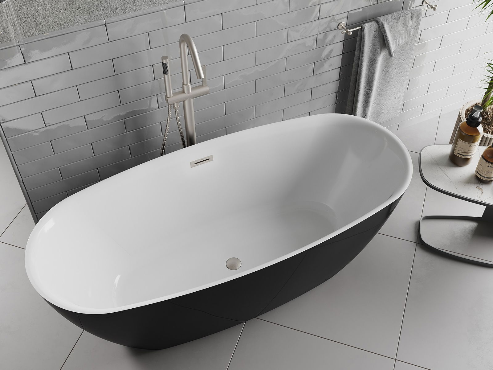 Mexen Luvo Slim baignoire autoportante 170 x 75 cm, blanc/noir, trop-plein nickel brossé - 52801707575-97
