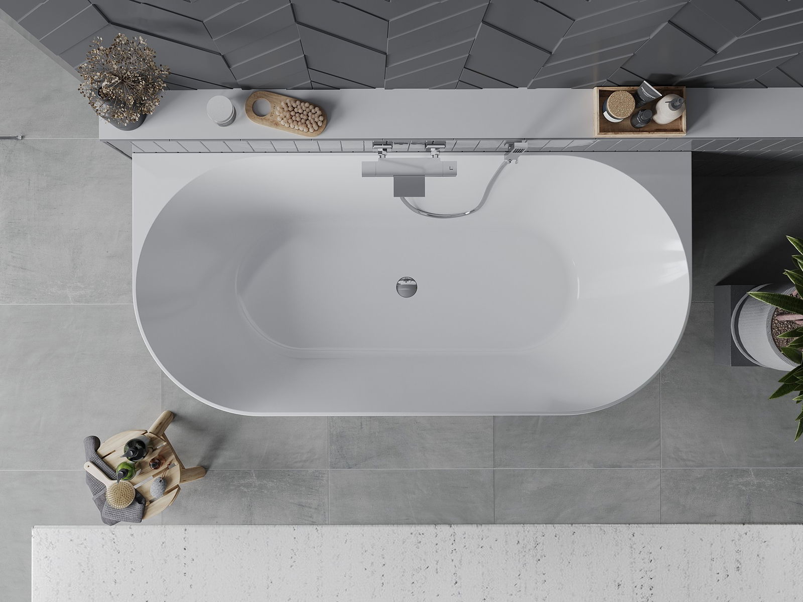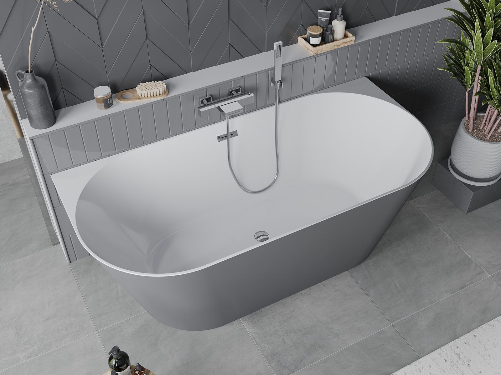 Mexen Oval Slim baignoire autoportante adossée 170 x 80 cm, blanche/grise, trop-plein chromé - 52661708062-01