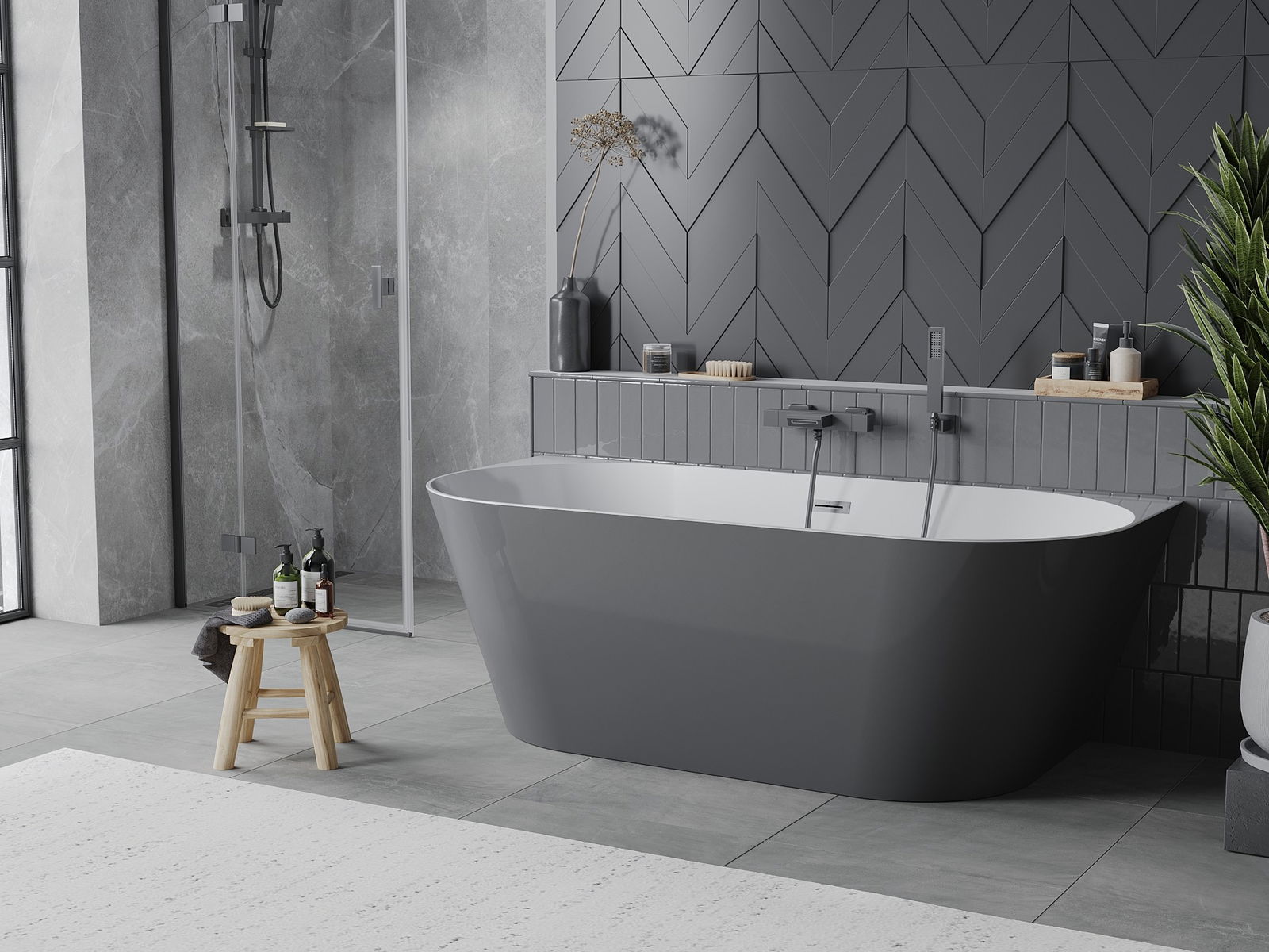 Mexen Oval Slim baignoire autoportante adossée 170 x 80 cm, blanche/grise, trop-plein gris canon brossé - 52661708062-66