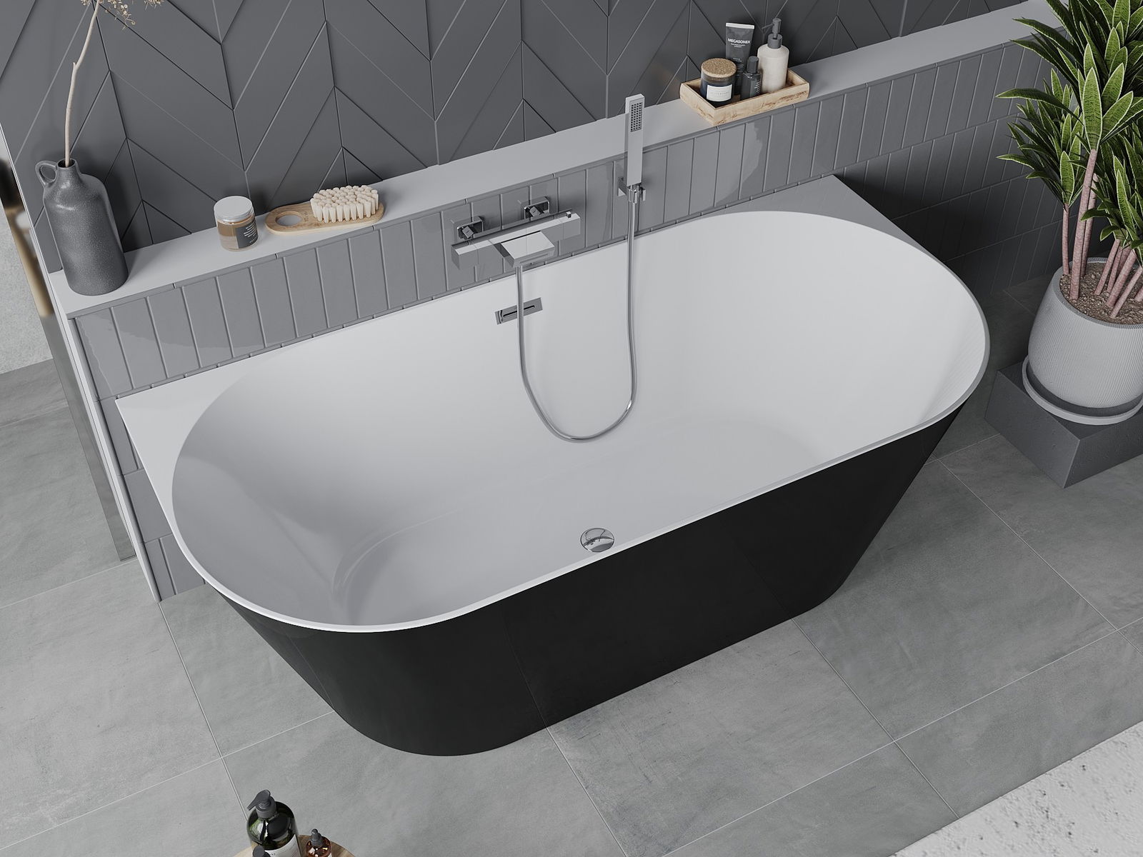 Mexen Oval Slim baignoire autoportante adossée 170 x 80 cm, blanche/noire, trop-plein chromé - 52661708075-01