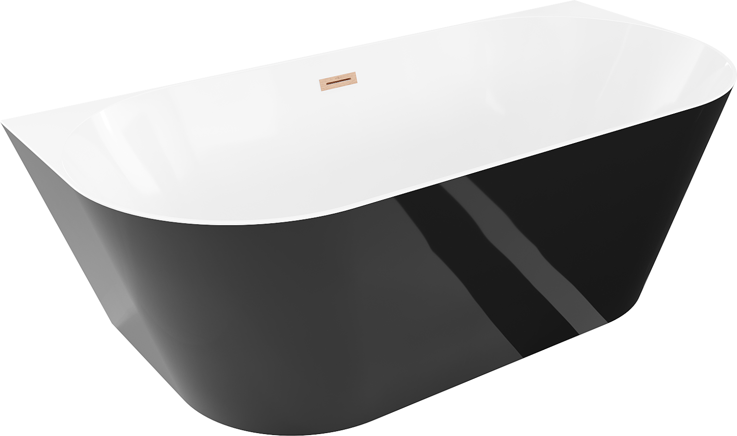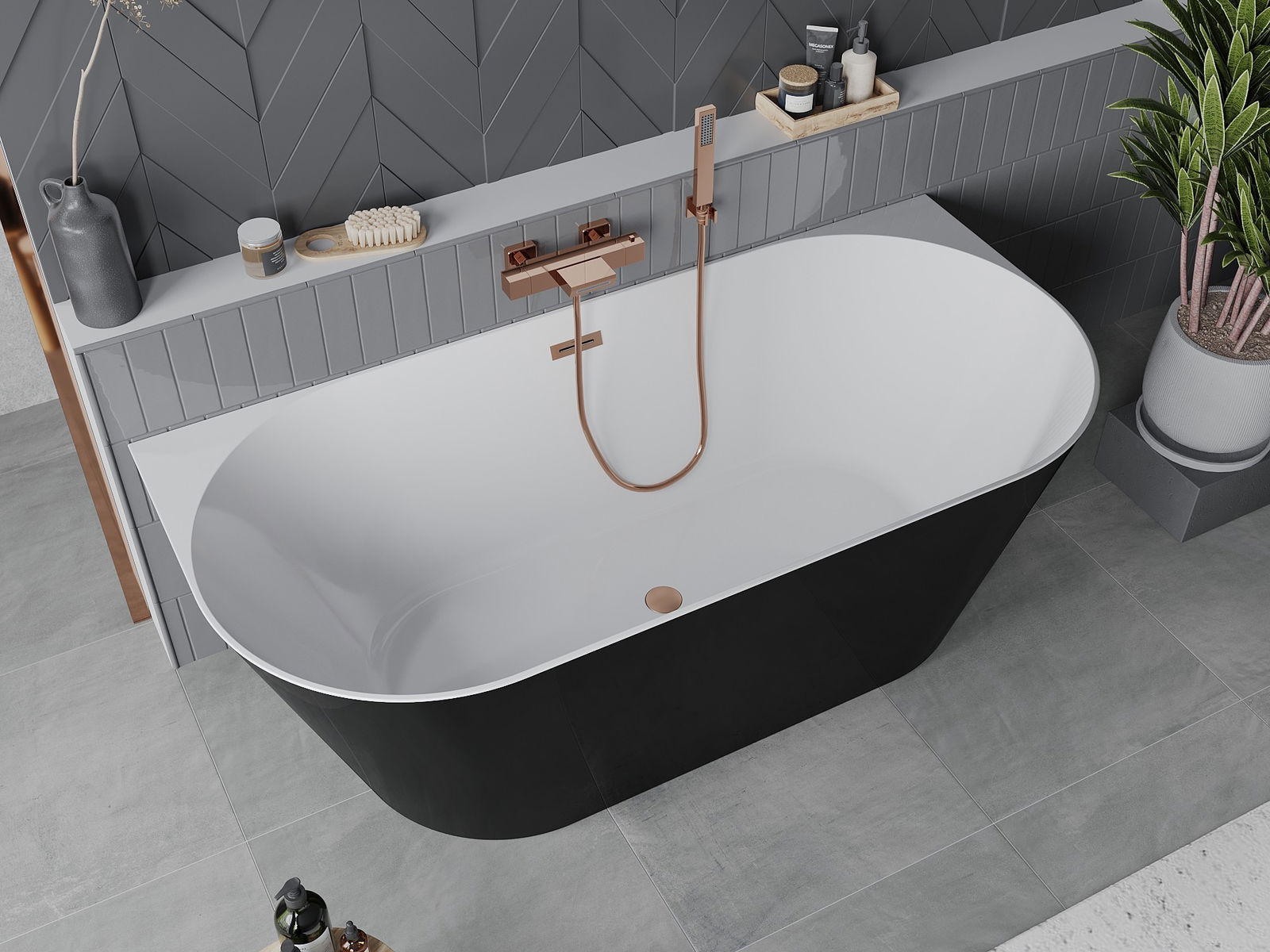 Mexen Oval Slim baignoire autoportante adossée 170 x 80 cm, blanche/noire, trop-plein cuivre brossé - 52661708075-65