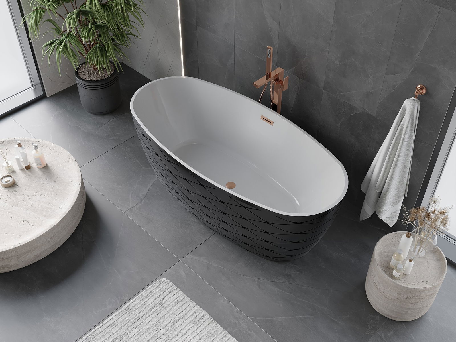 Mexen Olea baignoire autoportante motif 170 x 80 cm, blanc/noir, trop-plein cuivre brossé - 52821708075-65
