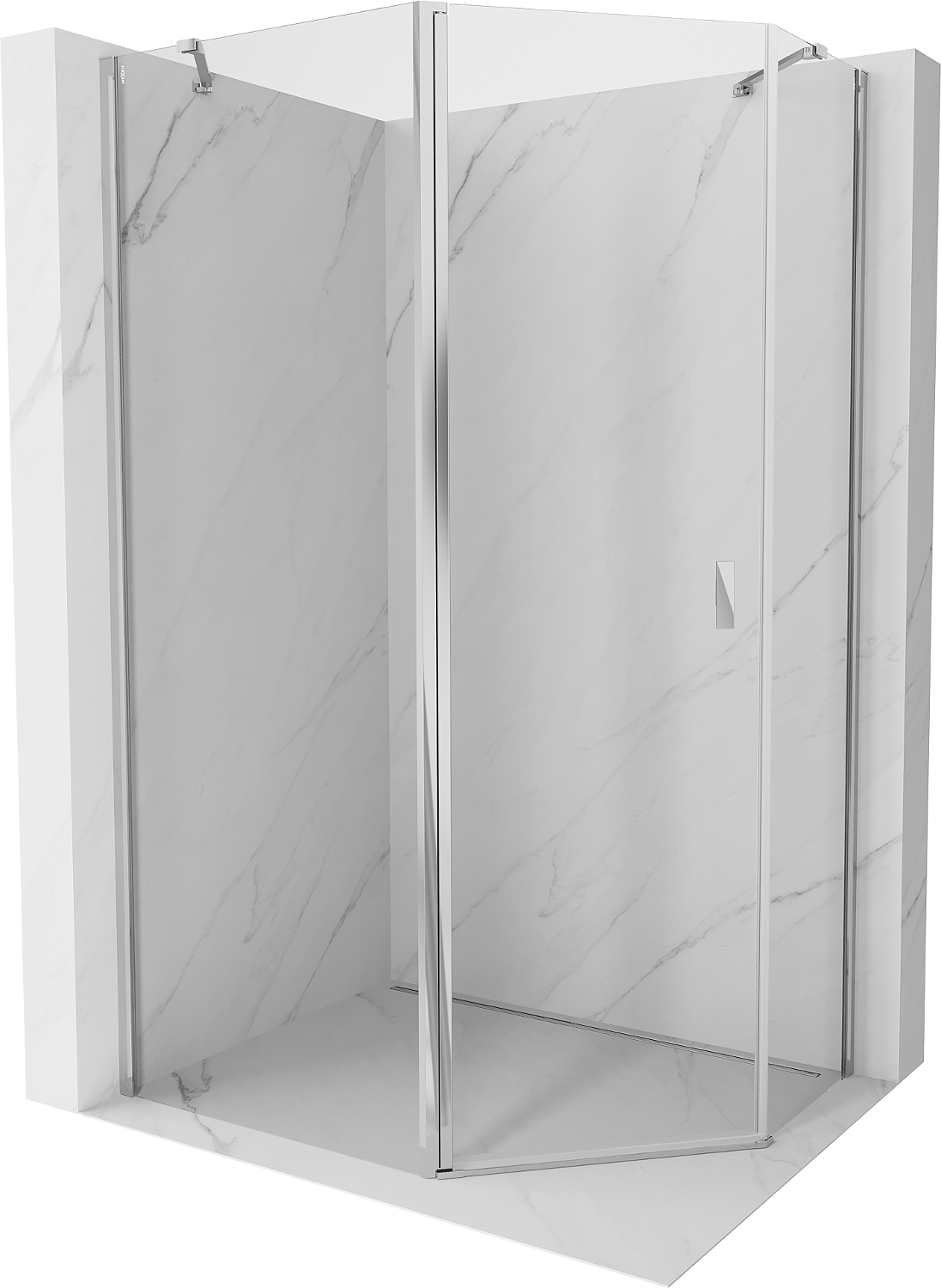 Mexen Mist cabine de douche pentagonale asymétrique pivotante 90 x 80 cm, transparent, chrome - 8A8-090-080-01-00