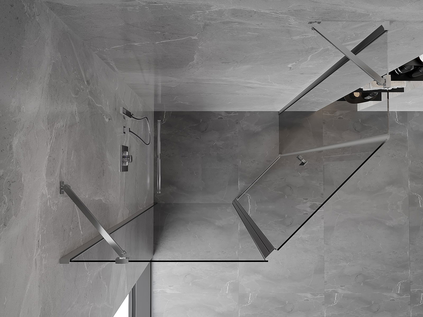 La poignée pratique et confortable est fabriquée en métal durable et résistant. Sa forme à la mode, combinée à une finition assortie à la couleur des profilés, donne à l'ensemble un aspect moderne et stylé, soulignant l'esthétique de chaque salle de bain.