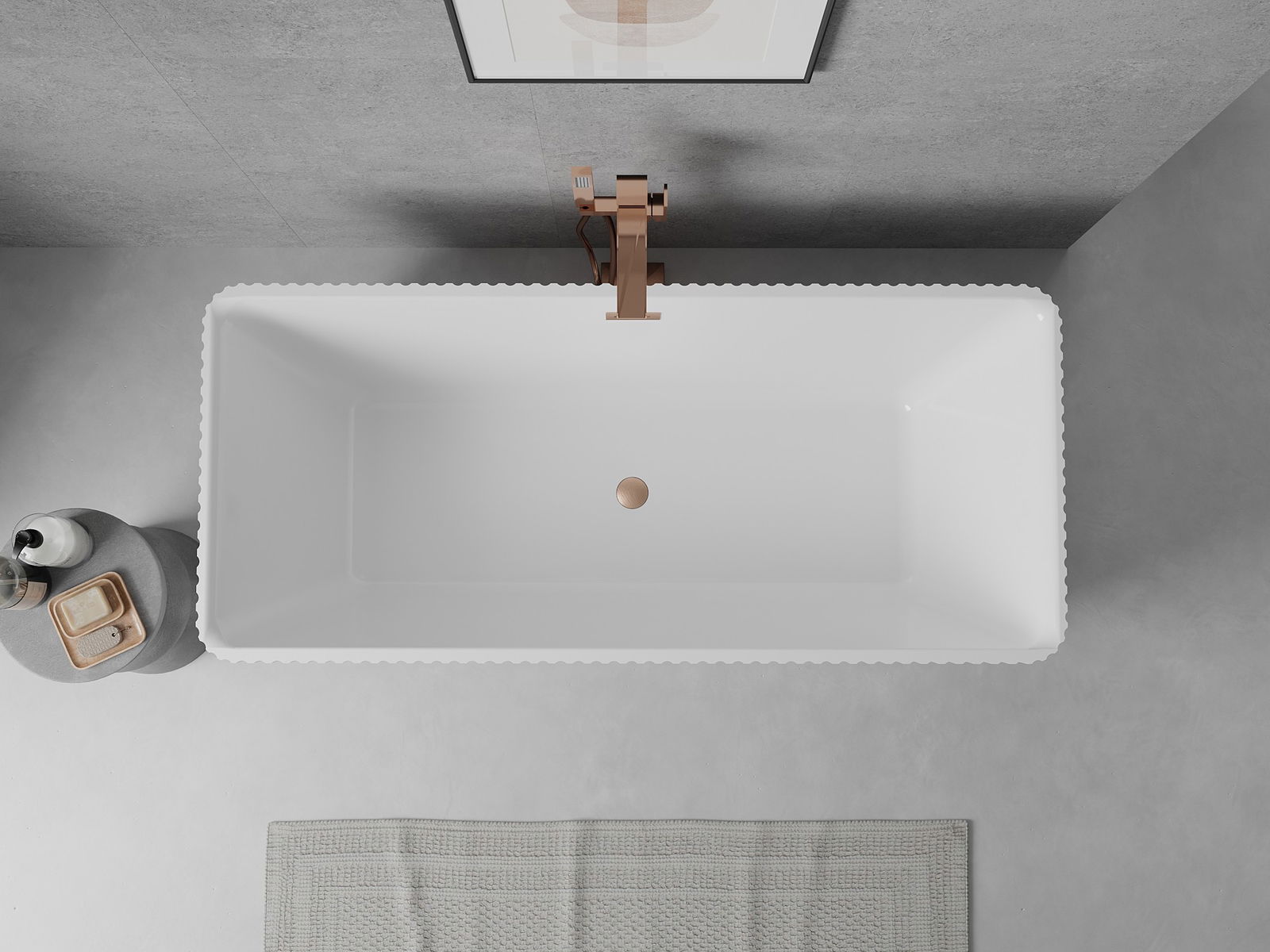 Mexen Nila baignoire autoportante rainurée 170 x 75 cm, blanche, trop-plein cuivre brossé - 52841708000-65