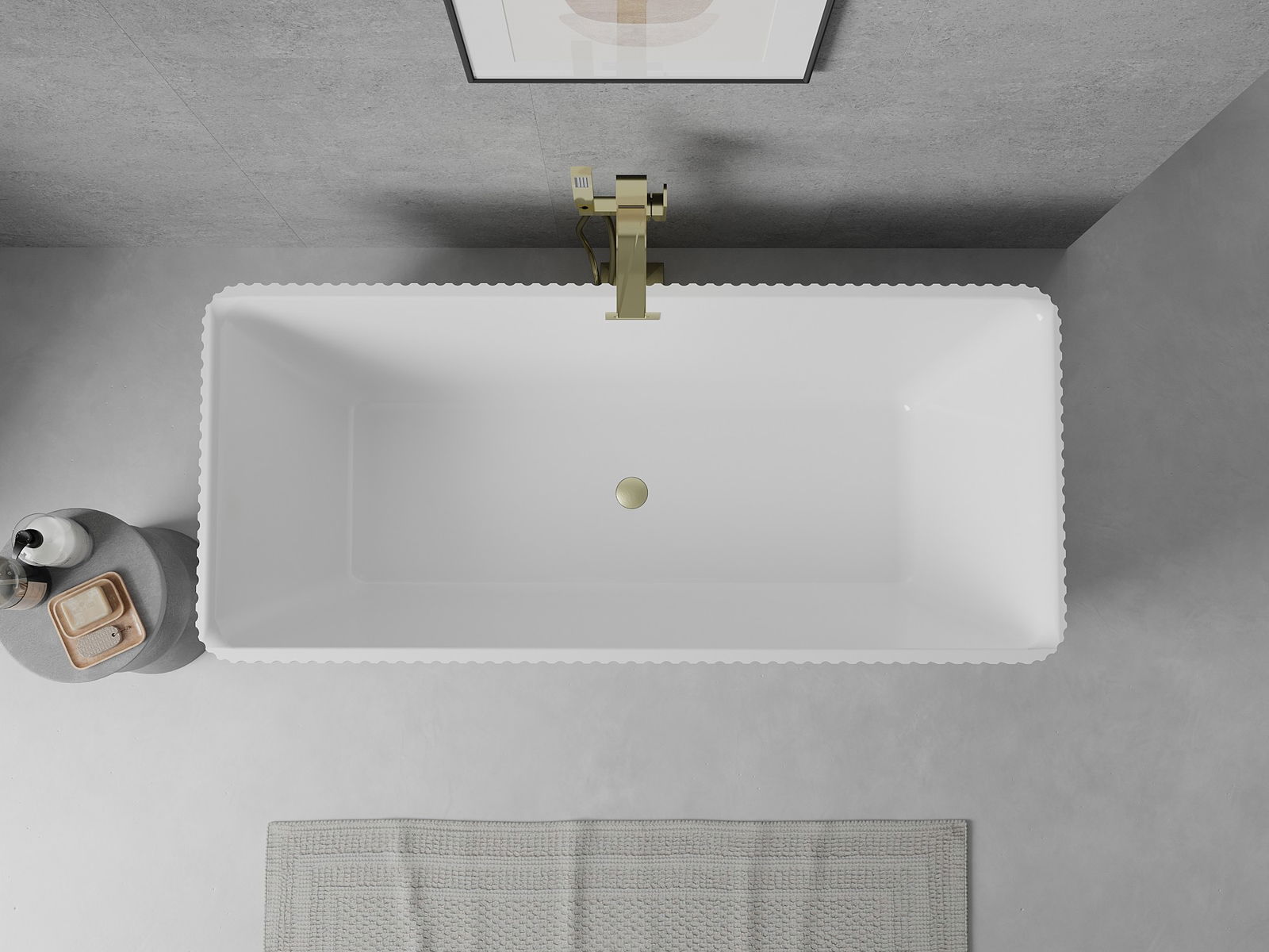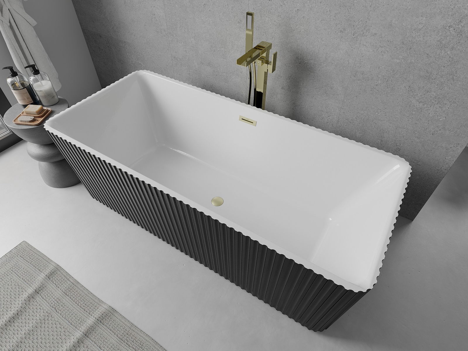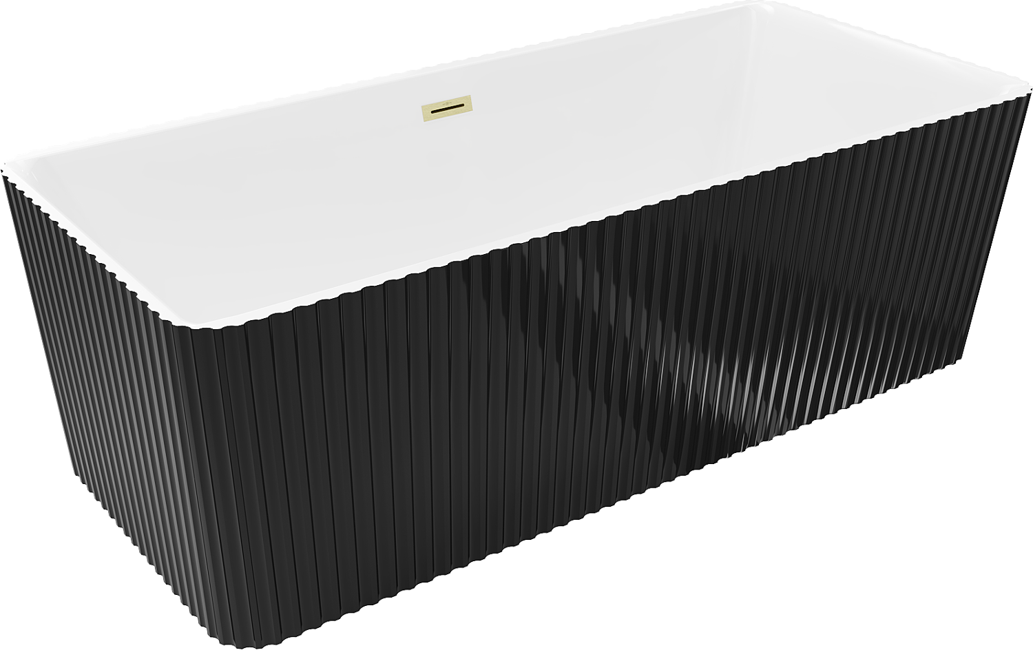 Mexen Nila baignoire autoportante rainurée 170 x 75 cm, blanc/noir, trop-plein doré brossé - 52841708075-55