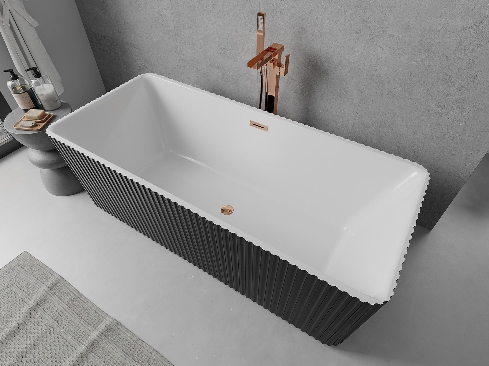 Mexen Nila baignoire autoportante cannelée 170 x 75 cm, blanc/noir, trop-plein or rose - 52841708075-60
