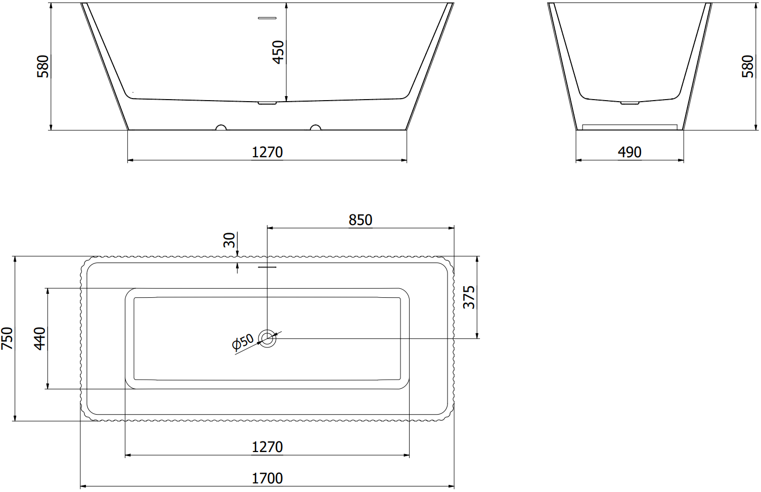 Mexen Tava baignoire autoportante rainurée 170 x 75 cm, blanc/noir, trop-plein or rose - 52851707575-60