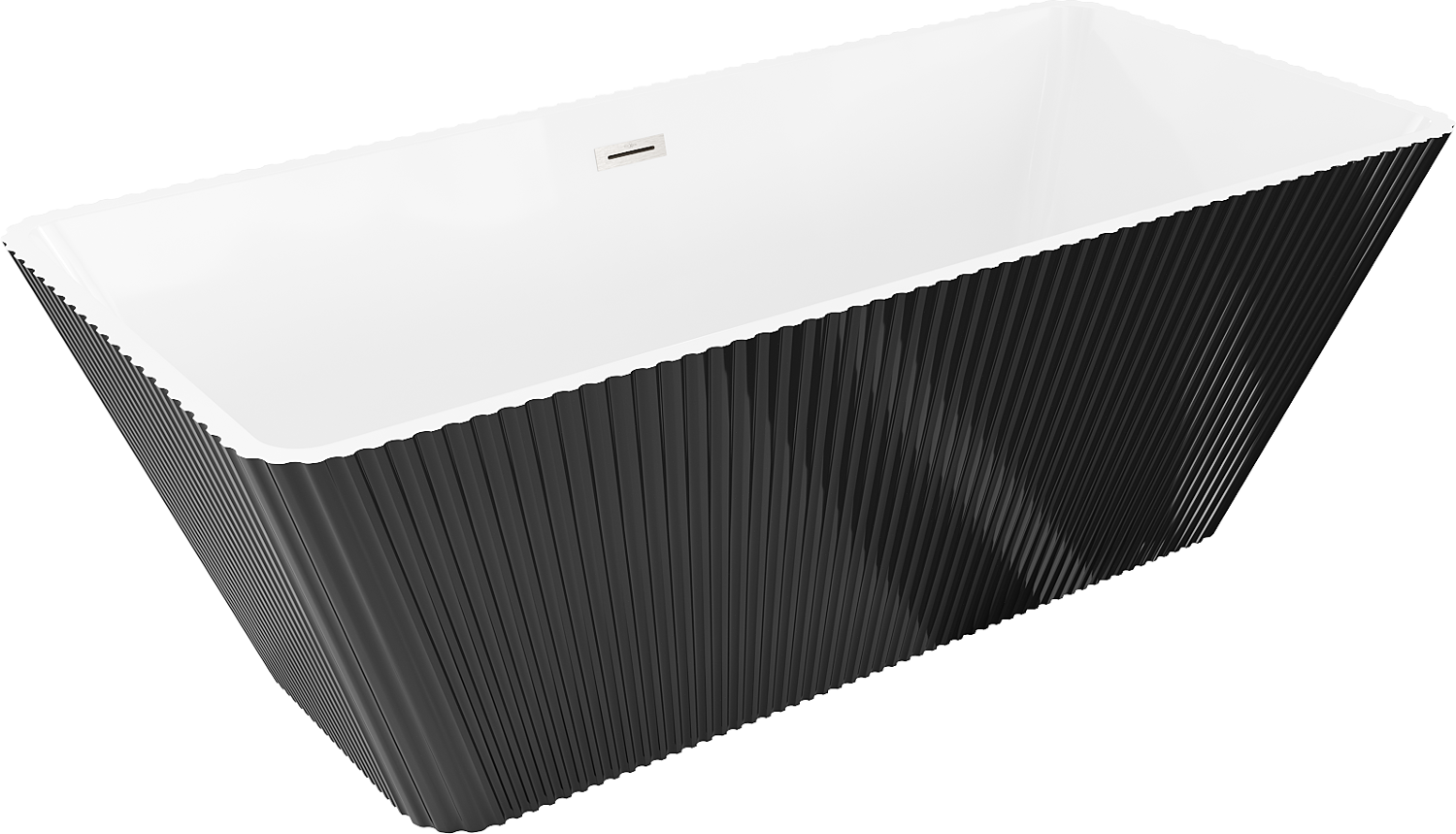Mexen Tava baignoire autoportante rainurée 170 x 75 cm, blanc/noir, trop-plein nickel brossé - 52851707575-97