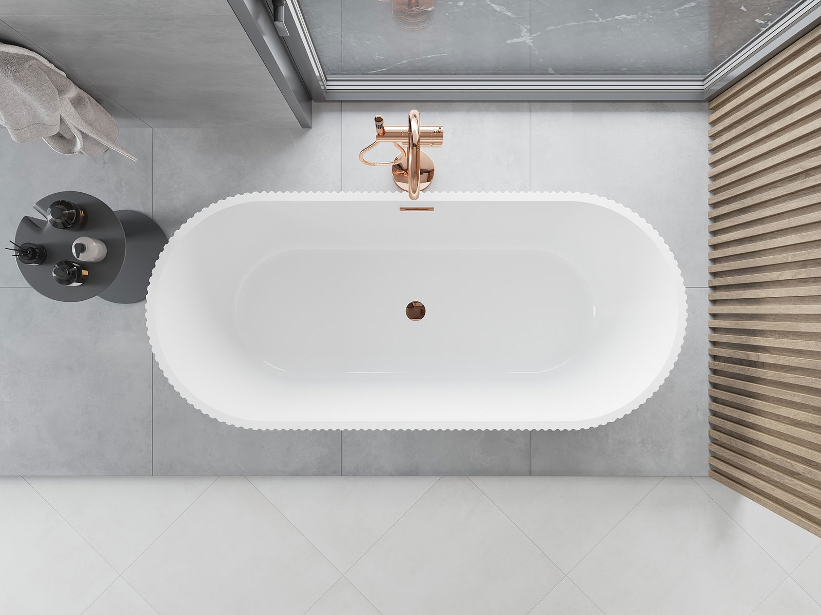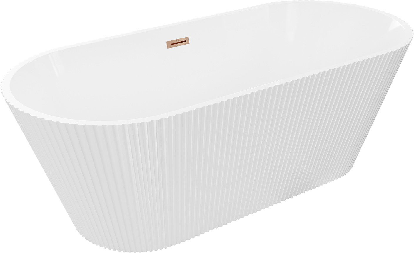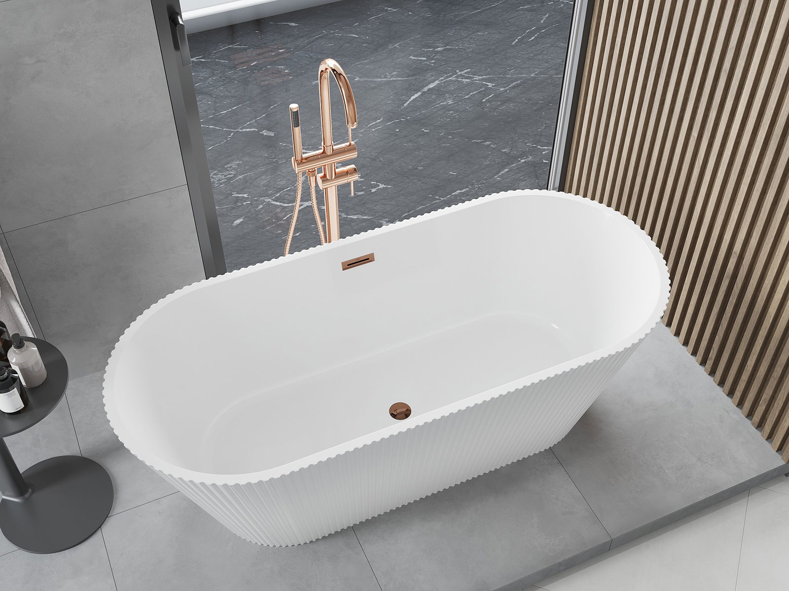 Mexen Yara baignoire autoportante rainurée 170 x 75 cm, blanche, trop-plein or rose - 52861707500-60