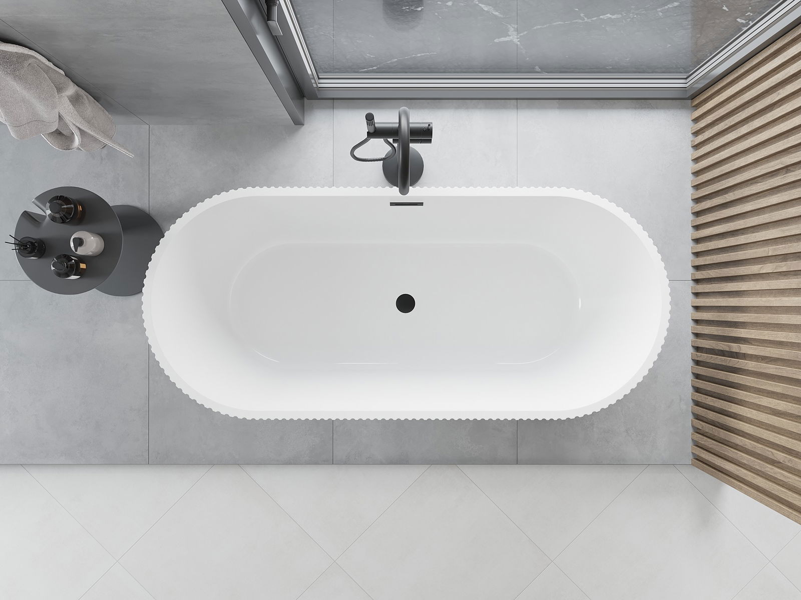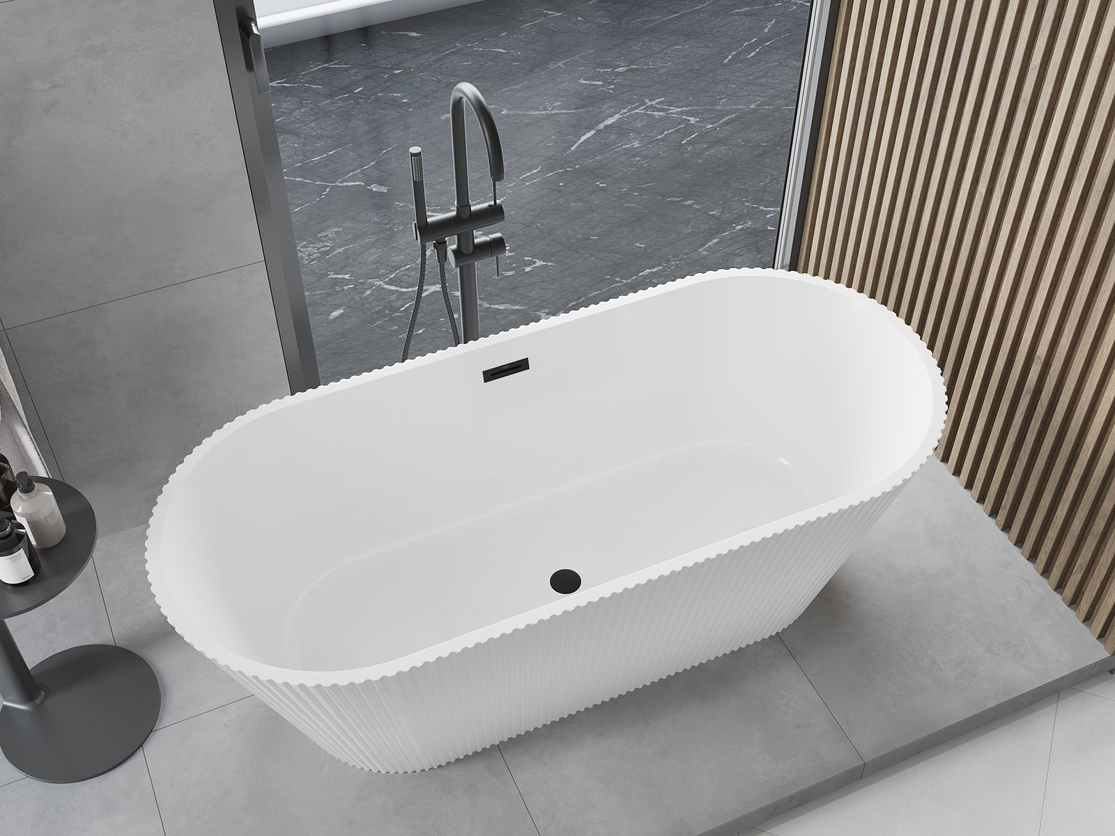 Mexen Yara baignoire autoportante cannelée 170 x 75 cm, blanche, trop-plein noir - 52861707500-70