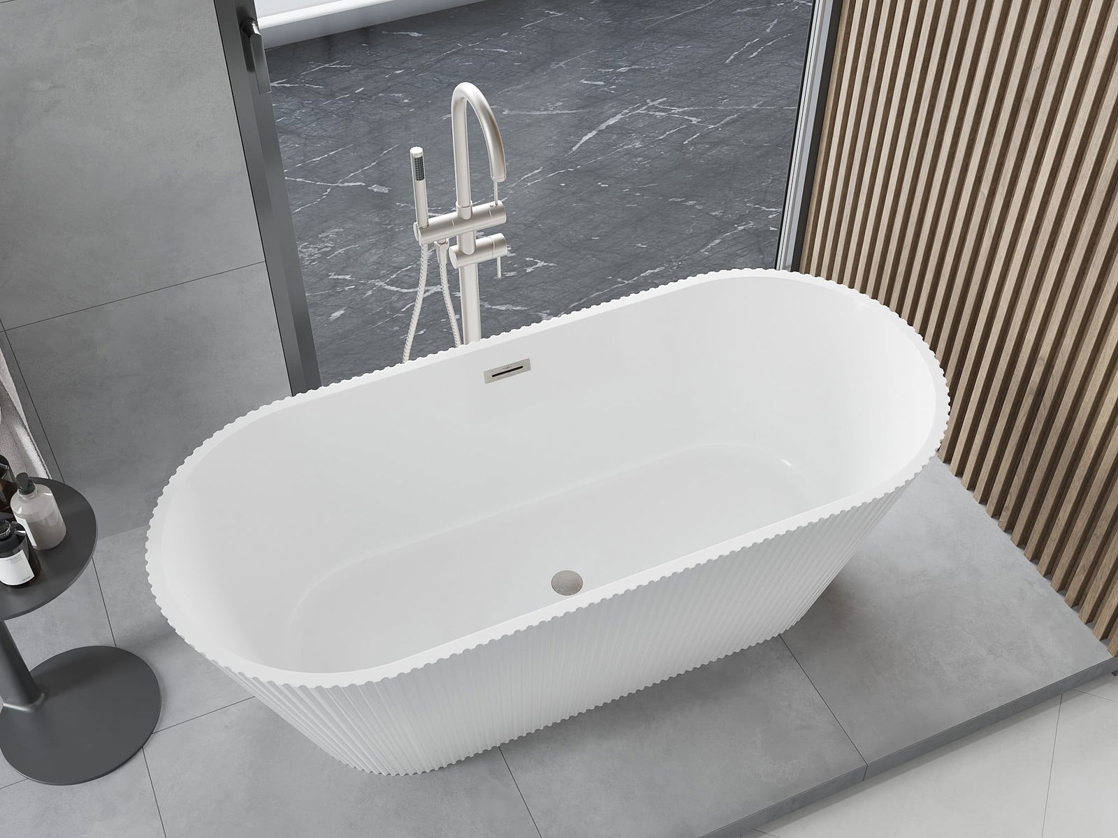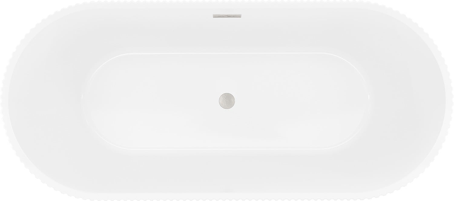 Mexen Yara baignoire autoportante cannelée 170 x 75 cm, blanche, trop-plein nickel brossé - 52861707500-97