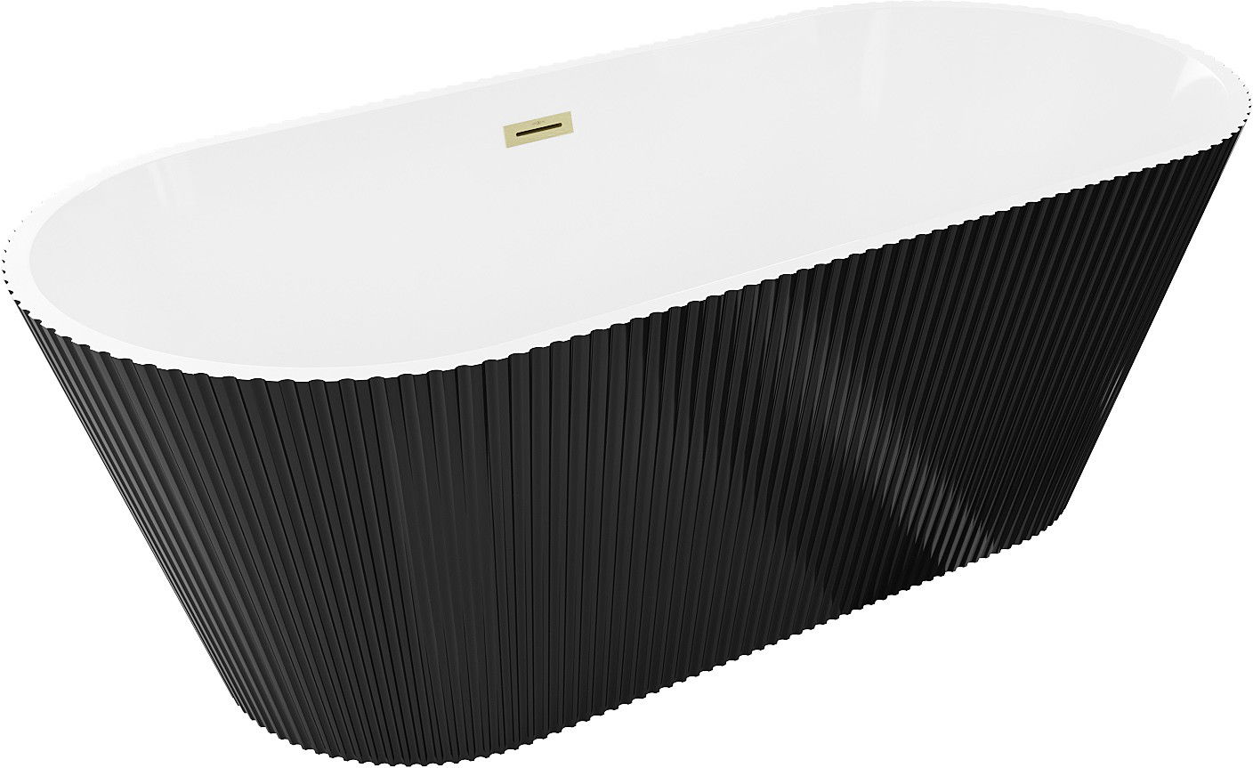 Mexen Yara baignoire autoportante rainurée 170 x 75 cm, blanc/noir, trop-plein doré brossé - 52861707575-55