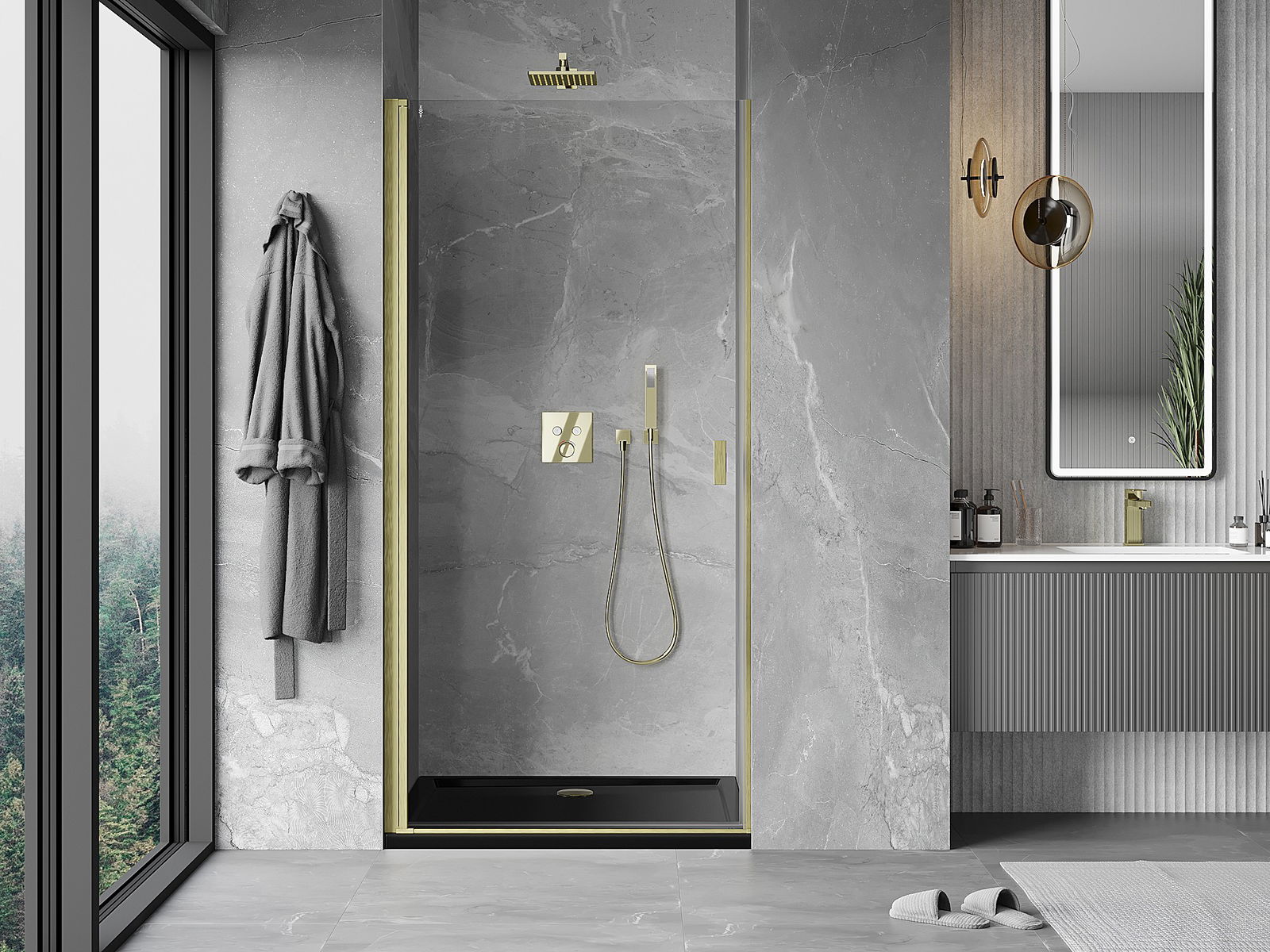 La poignée pratique et confortable est fabriquée en métal durable et résistant. Sa forme à la mode, combinée à une finition assortie à la couleur des profilés, donne à l'ensemble un aspect moderne et stylé, soulignant l'esthétique de chaque salle de bain.