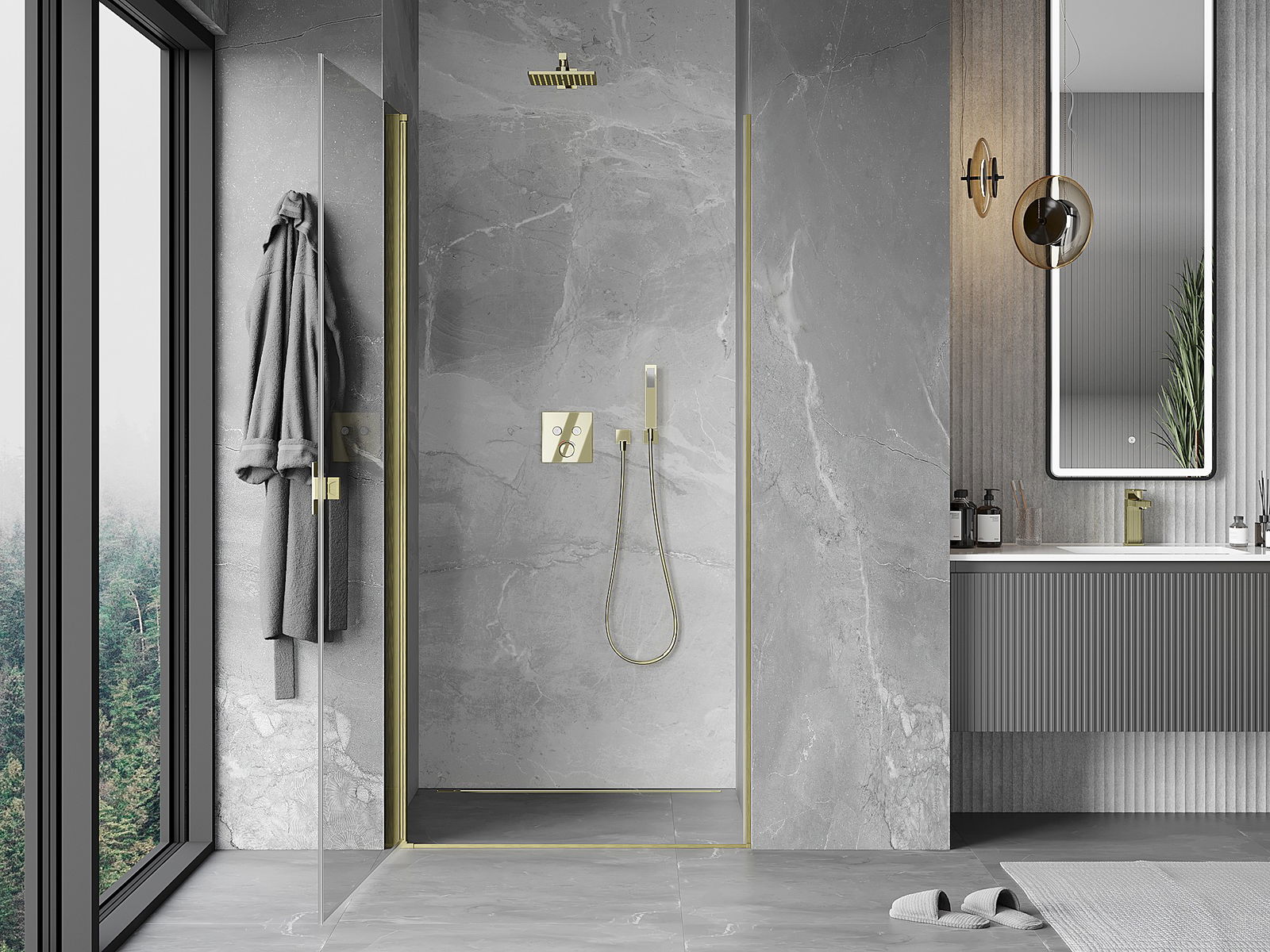 La poignée pratique et confortable est fabriquée en métal durable et résistant. Sa forme à la mode, combinée à une finition assortie à la couleur des profilés, donne à l'ensemble un aspect moderne et stylé, soulignant l'esthétique de chaque salle de bain.
