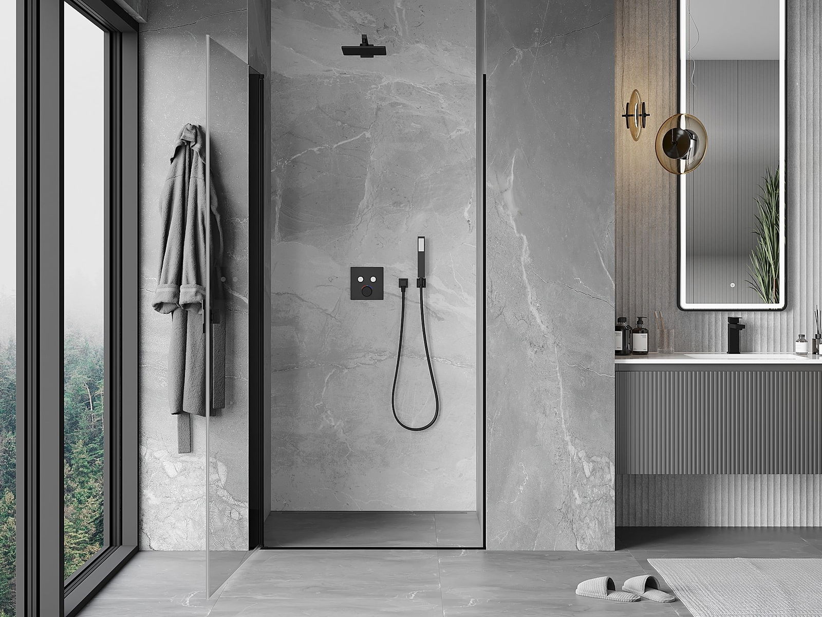 La poignée pratique et confortable est fabriquée en métal durable et résistant. Sa forme à la mode, combinée à une finition assortie à la couleur des profilés, donne à l'ensemble un aspect moderne et stylé, soulignant l'esthétique de chaque salle de bain.