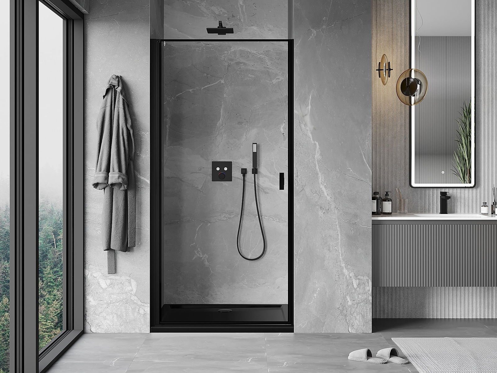 Mexen Mist-B porte de douche battante gauche 90 cm, cadre noir, noir - 8A2-090-000-70-70-L