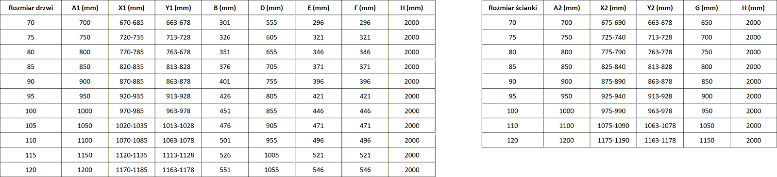Taille : 85x75 cm (porte gauche 85 cm, paroi 75 cm)