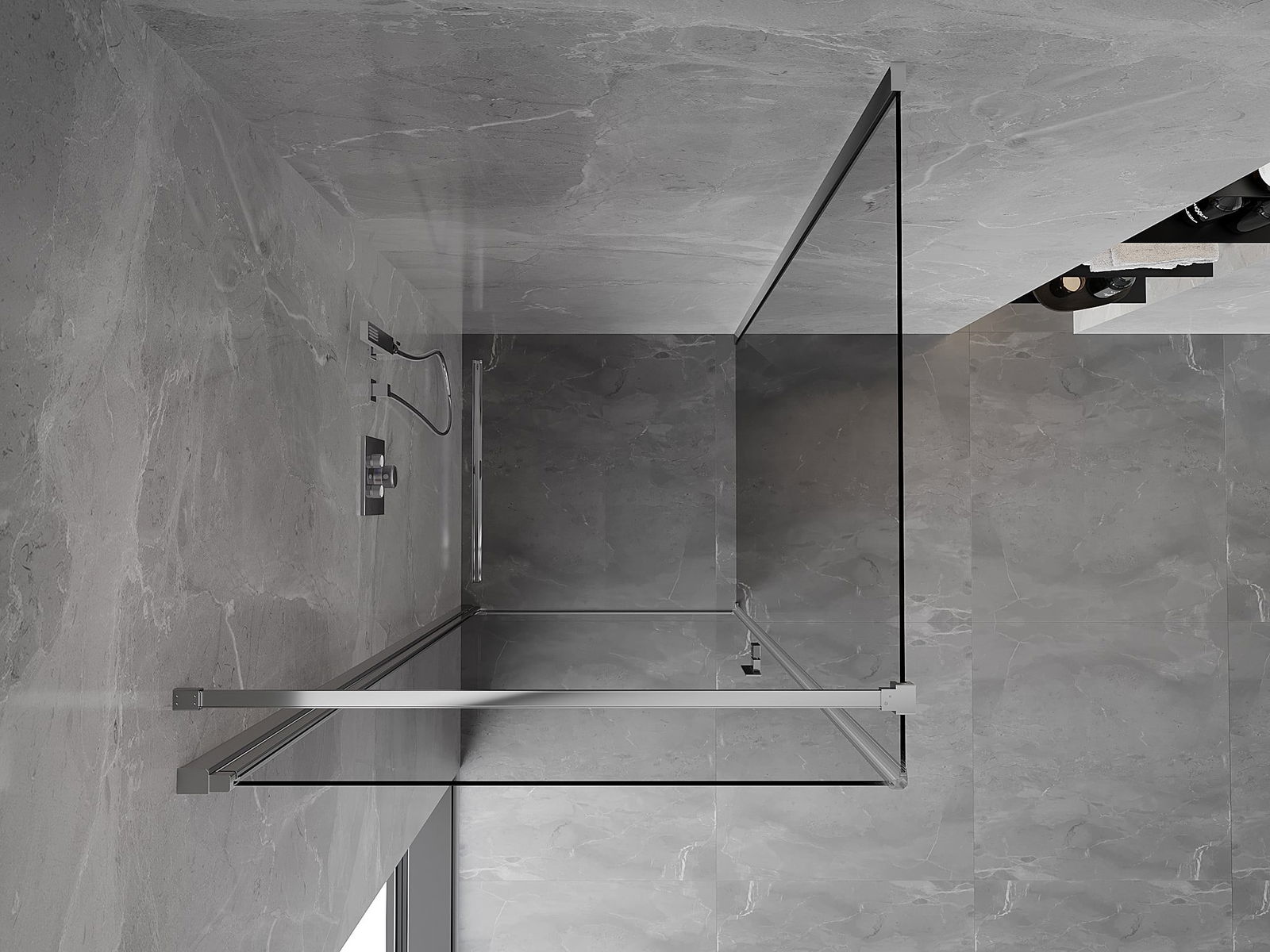 La poignée pratique et confortable est fabriquée en métal durable et résistant. Sa forme à la mode, combinée à une finition assortie à la couleur des profilés, donne à l'ensemble un aspect moderne et stylé, soulignant l'esthétique de chaque salle de bain.