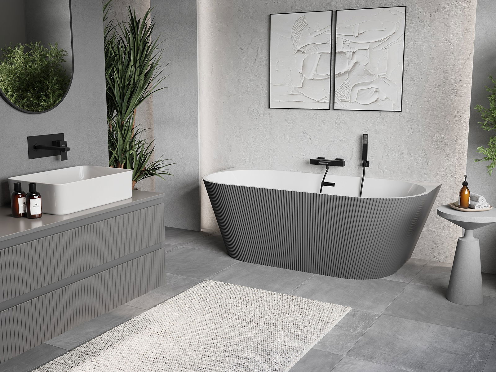 Mexen Oris baignoire autoportante murale rainurée 150 x 75 cm, blanc/gris, trop-plein noir - 52871507562-70
