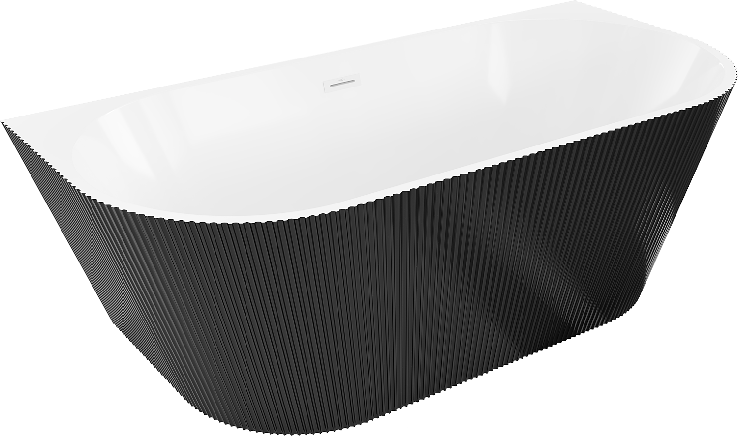Mexen Oris baignoire autoportante adossée rainurée 150 x 75 cm, blanche/noire, trop-plein blanc - 52871507575-20