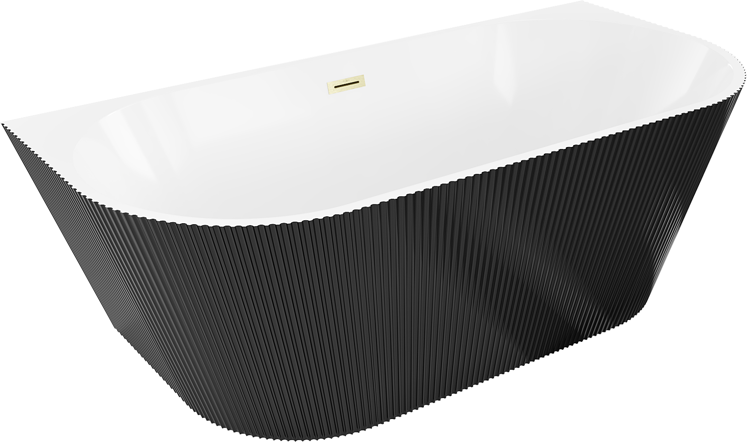 Mexen Oris baignoire autoportante adossée côtelée 150 x 75 cm, blanc/noir, trop-plein or brossé - 52871507575-55