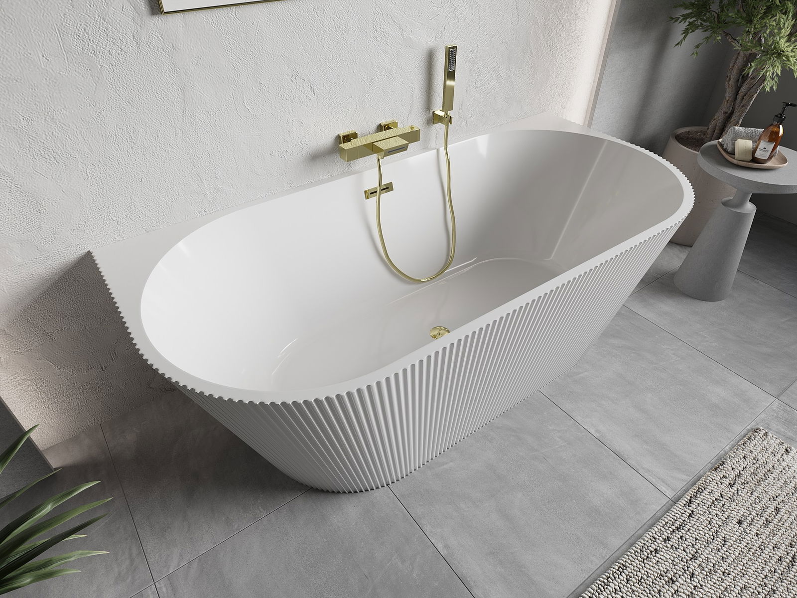 Mexen Oris baignoire autoportante adossée rainurée 170 x 80 cm, blanche, trop-plein or brossé - 52871708000-55