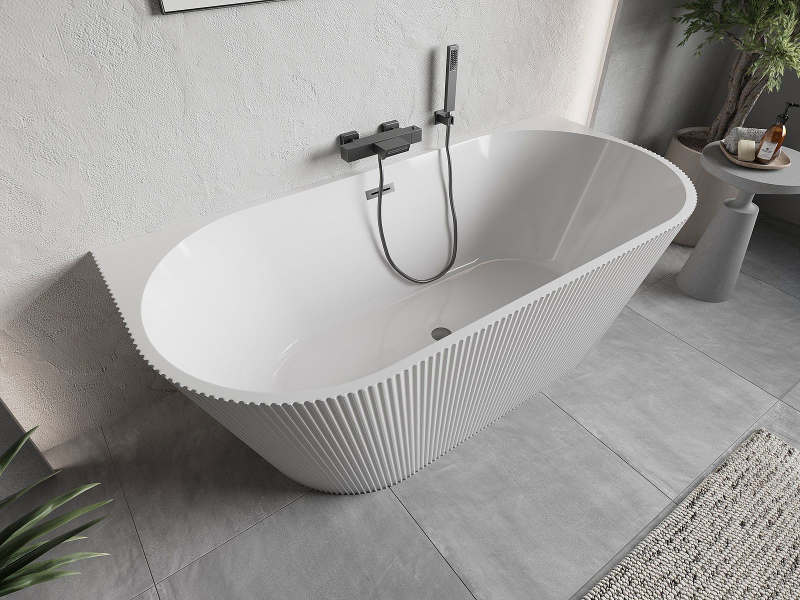 Mexen Oris baignoire autoportante adossée cannelée 170 x 80 cm, blanche, trop-plein gris canon brossé - 52871708000-66