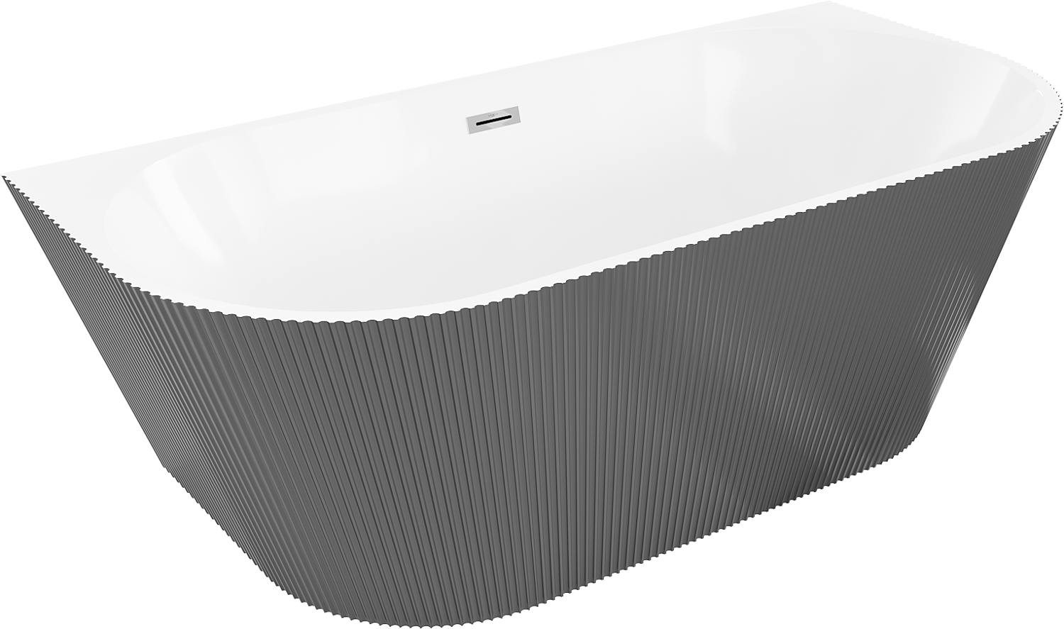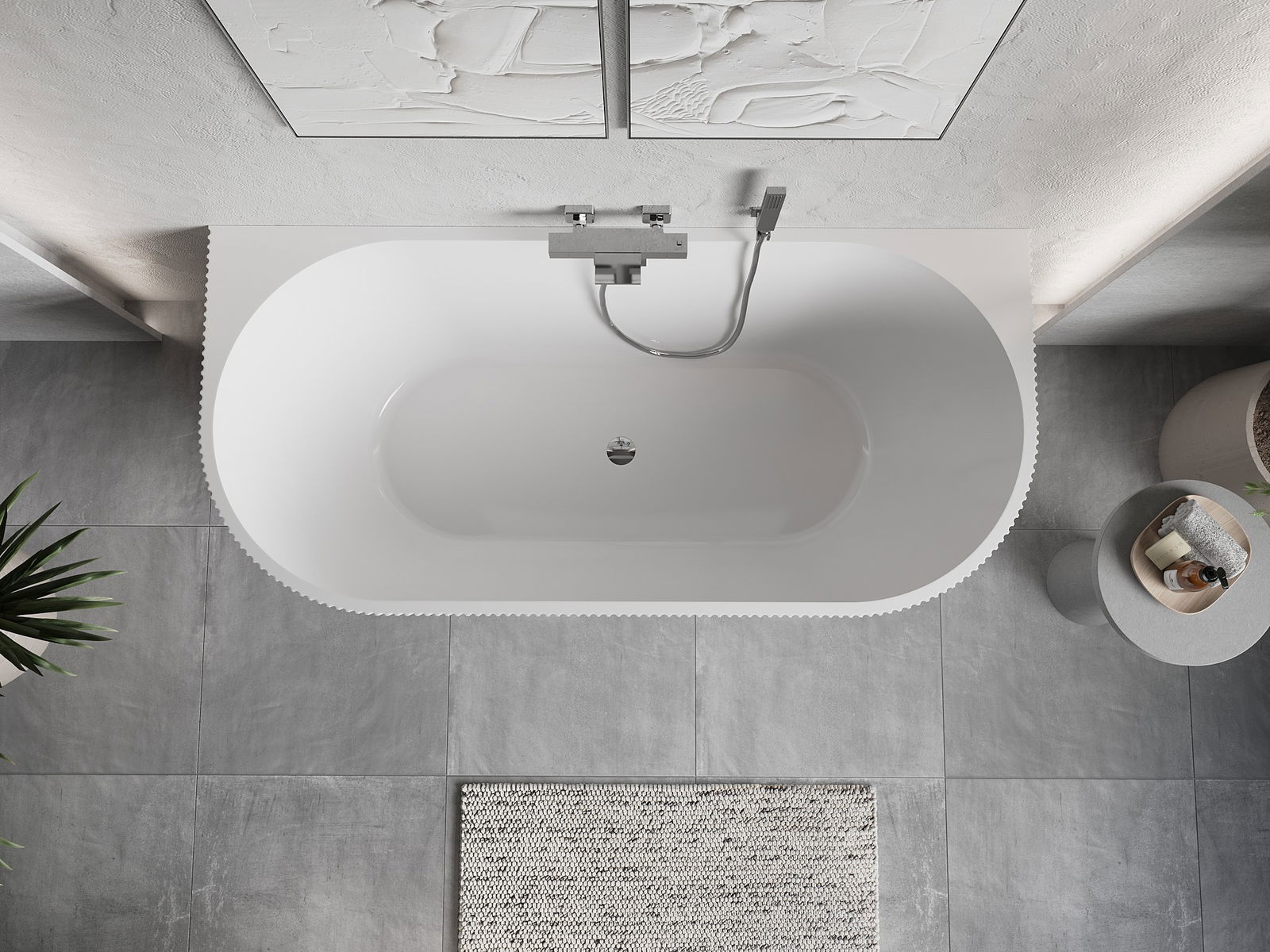 Mexen Oris baignoire autoportante murale cannelée 170 x 80 cm, blanc/gris, trop-plein chromé - 52871708062-01