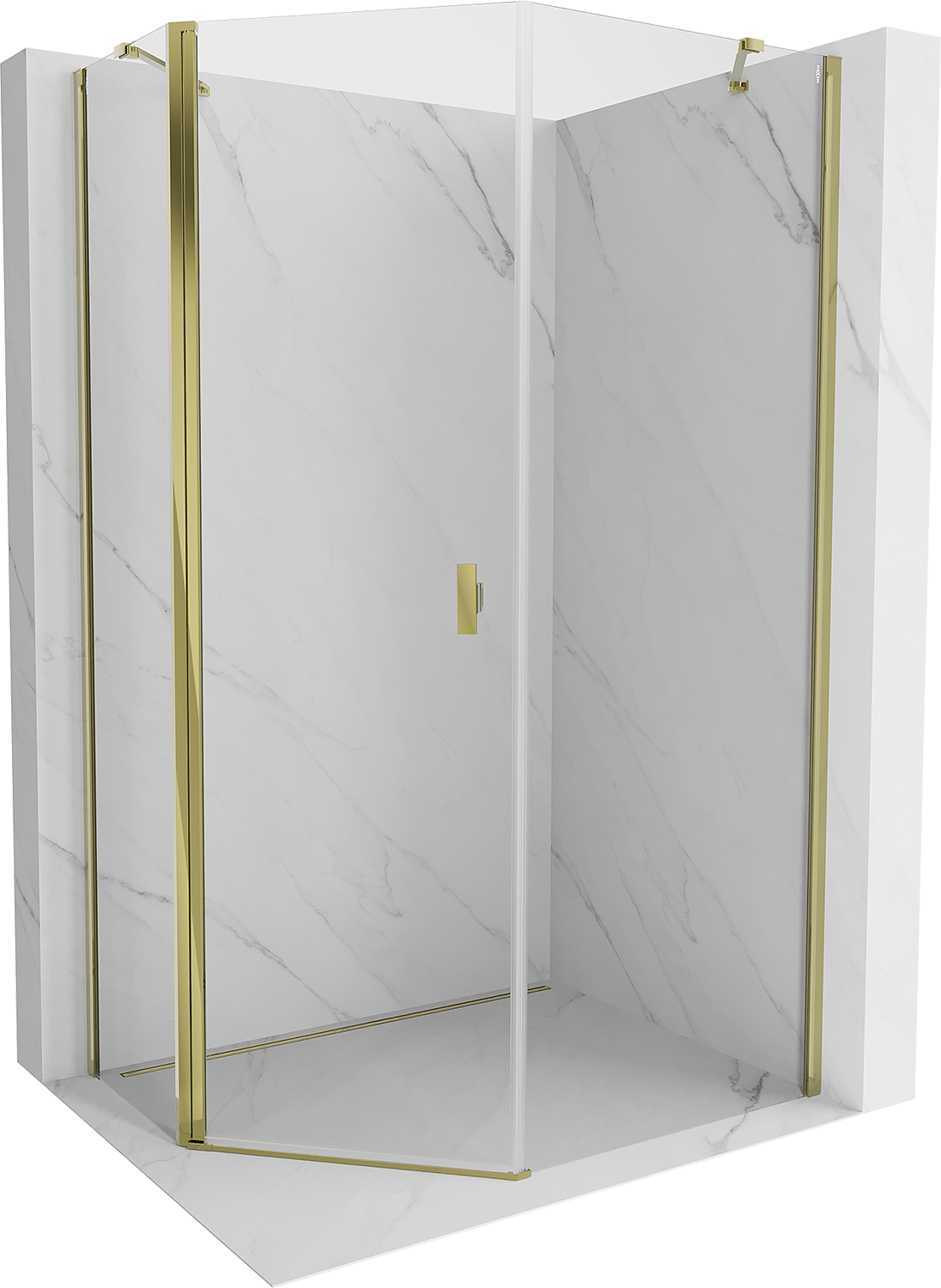 Mexen Mist cabine de douche pentagonale asymétrique pivotante 90 x 100 cm, transparent, or - 8A8-090-100-50-00