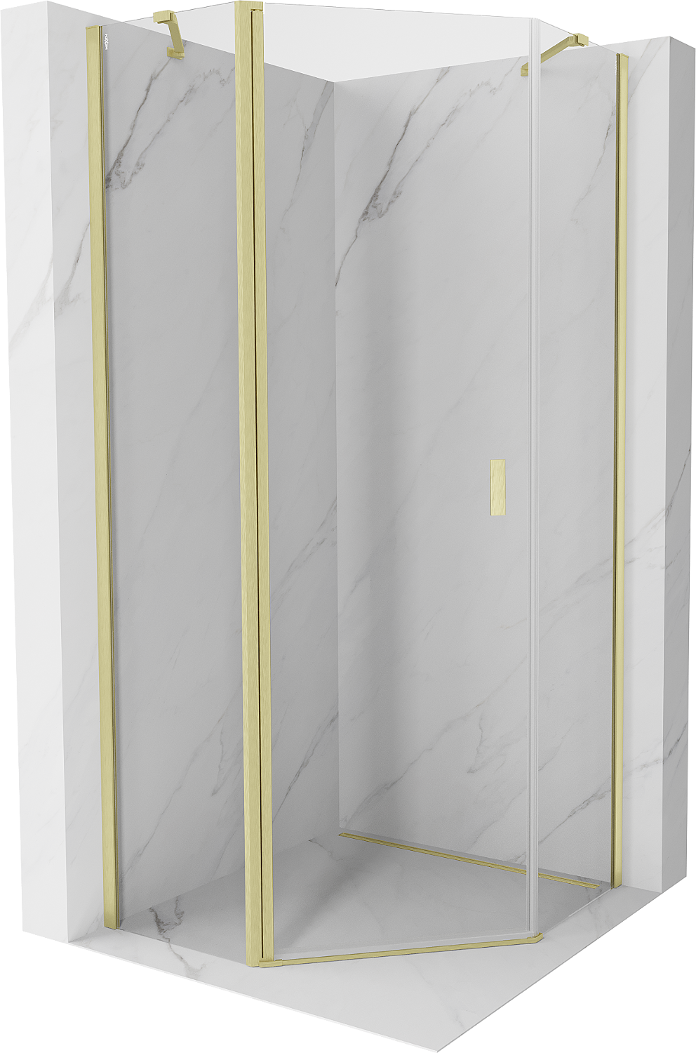 Mexen Mist cabine de douche pentagonale pivotante 80 x 80 cm, transparent, or brossé - 8A8-080-080-55-00