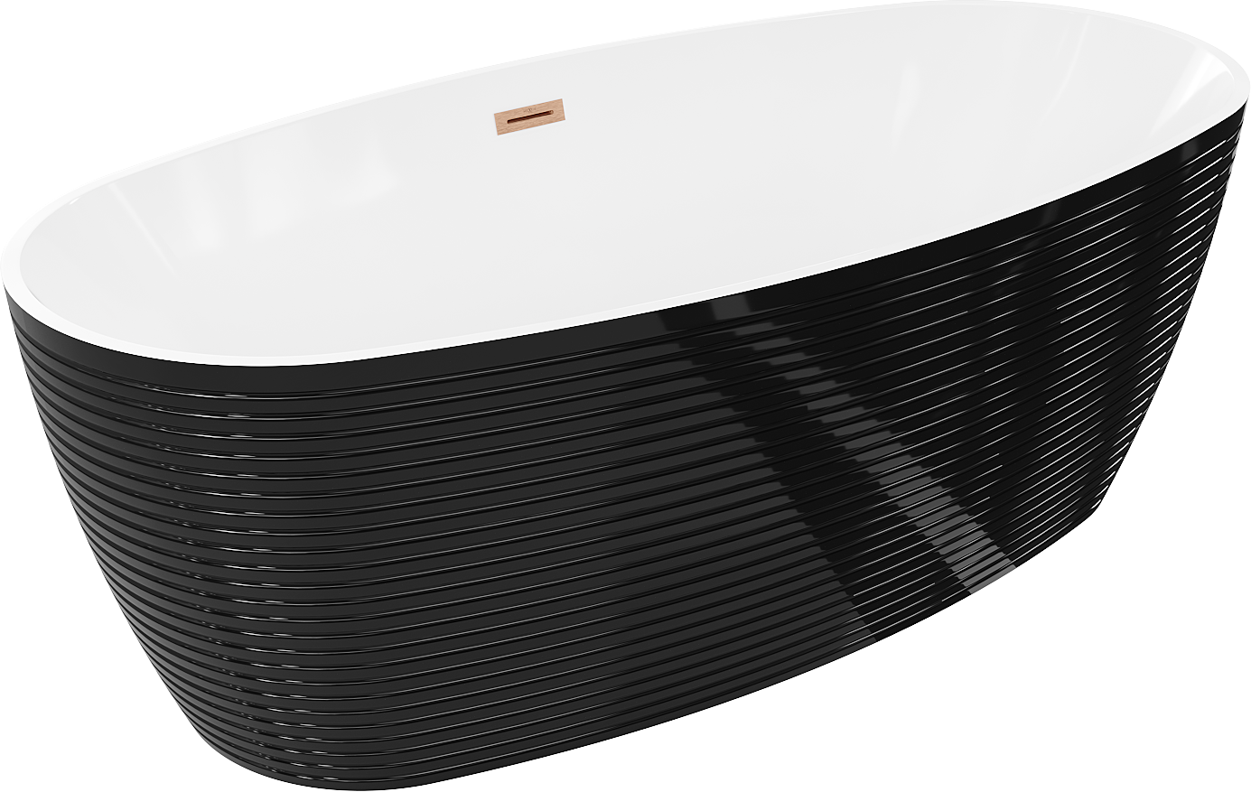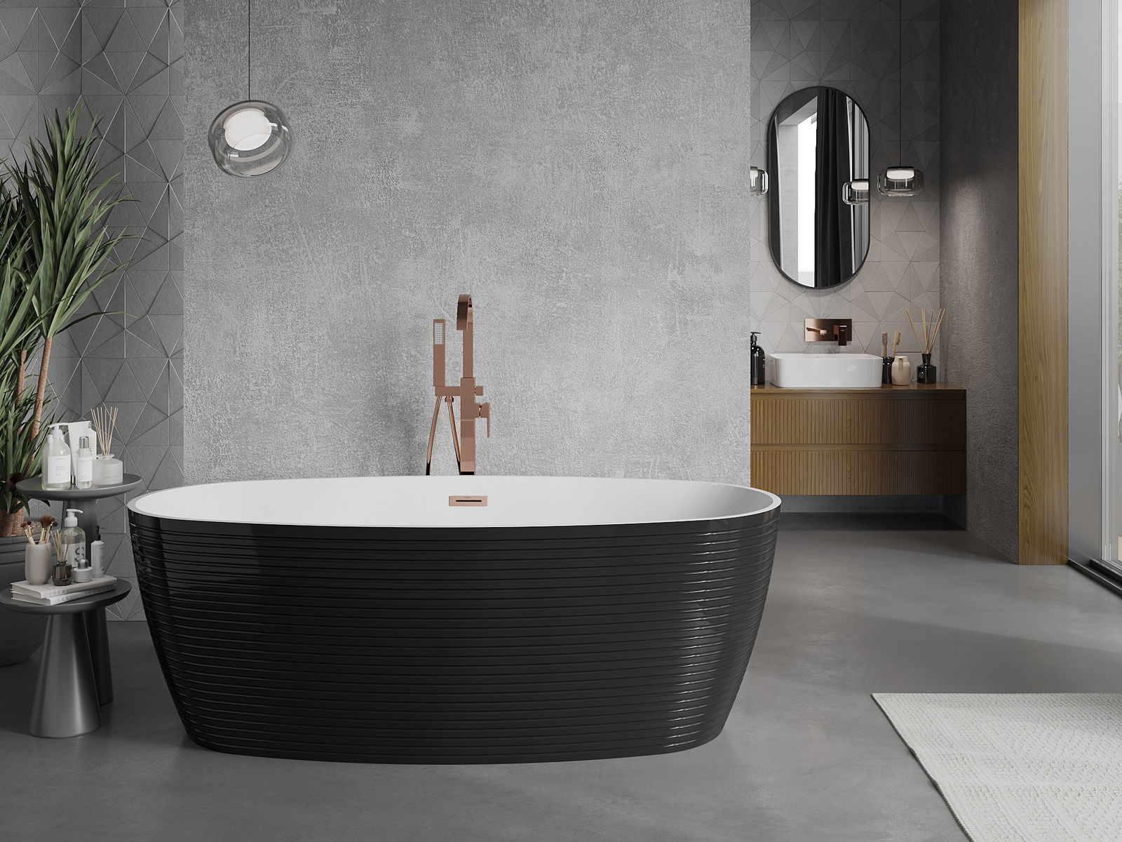 Mexen Lira baignoire autoportante modèle 170 x 80 cm, blanc/noir, trop-plein cuivre brossé - 52831708075-65