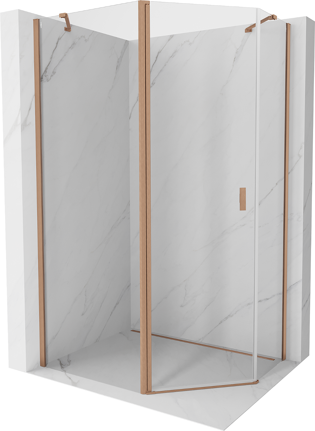 Mexen Mist cabine de douche pentagonale asymétrique pivotante 100 x 80 cm, transparent, cuivre brossé - 8A8-100-080-65-00