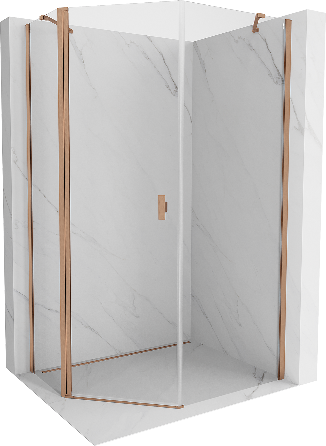 Mexen Mist cabine de douche pentagonale asymétrique pivotante 80 x 100 cm, transparent, cuivre brossé - 8A8-080-100-65-00