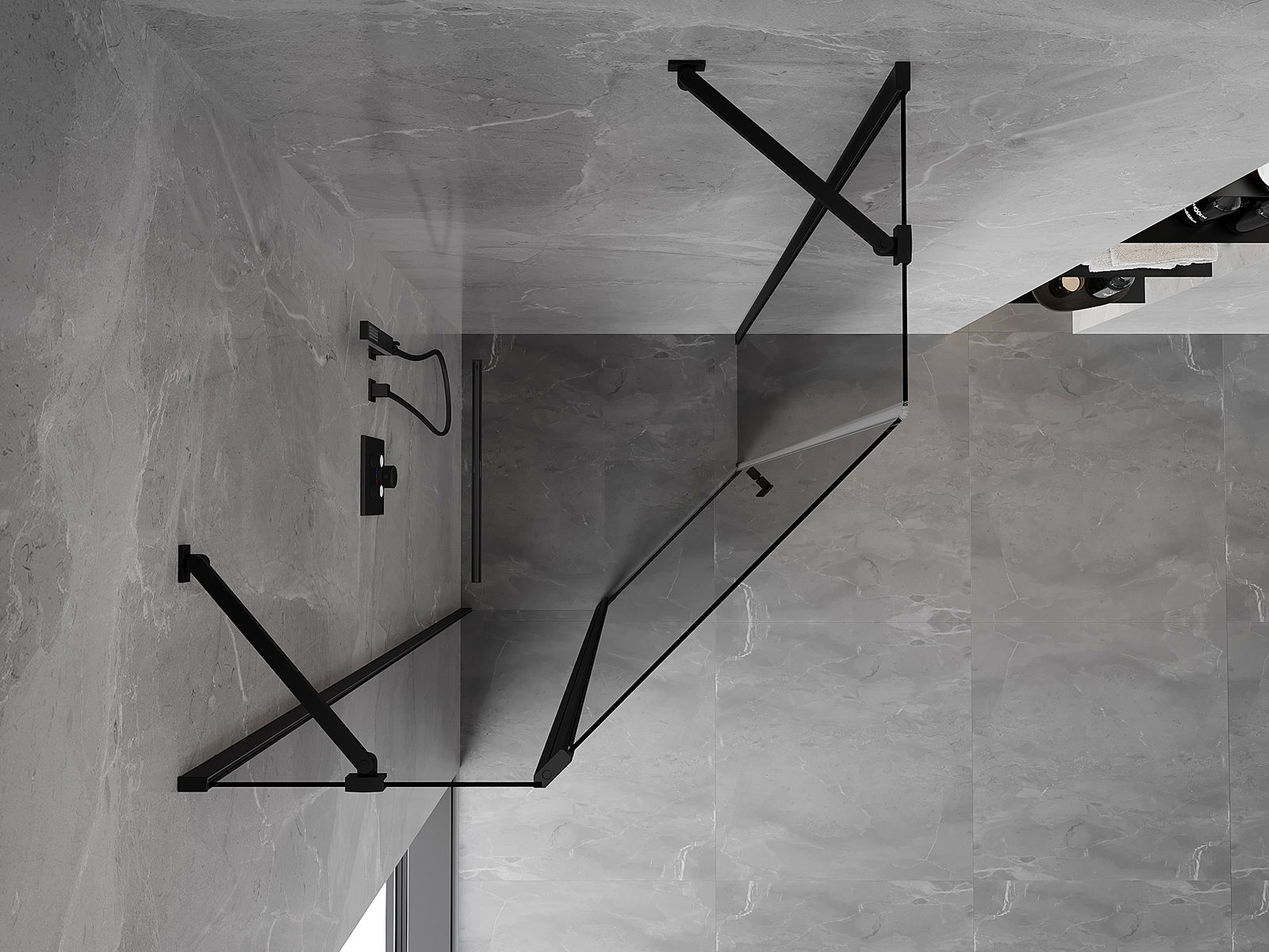 Mexen Mist cabine de douche pentagonale pivotante 90 x 90 cm, transparente, noire - 8A8-090-090-70-00