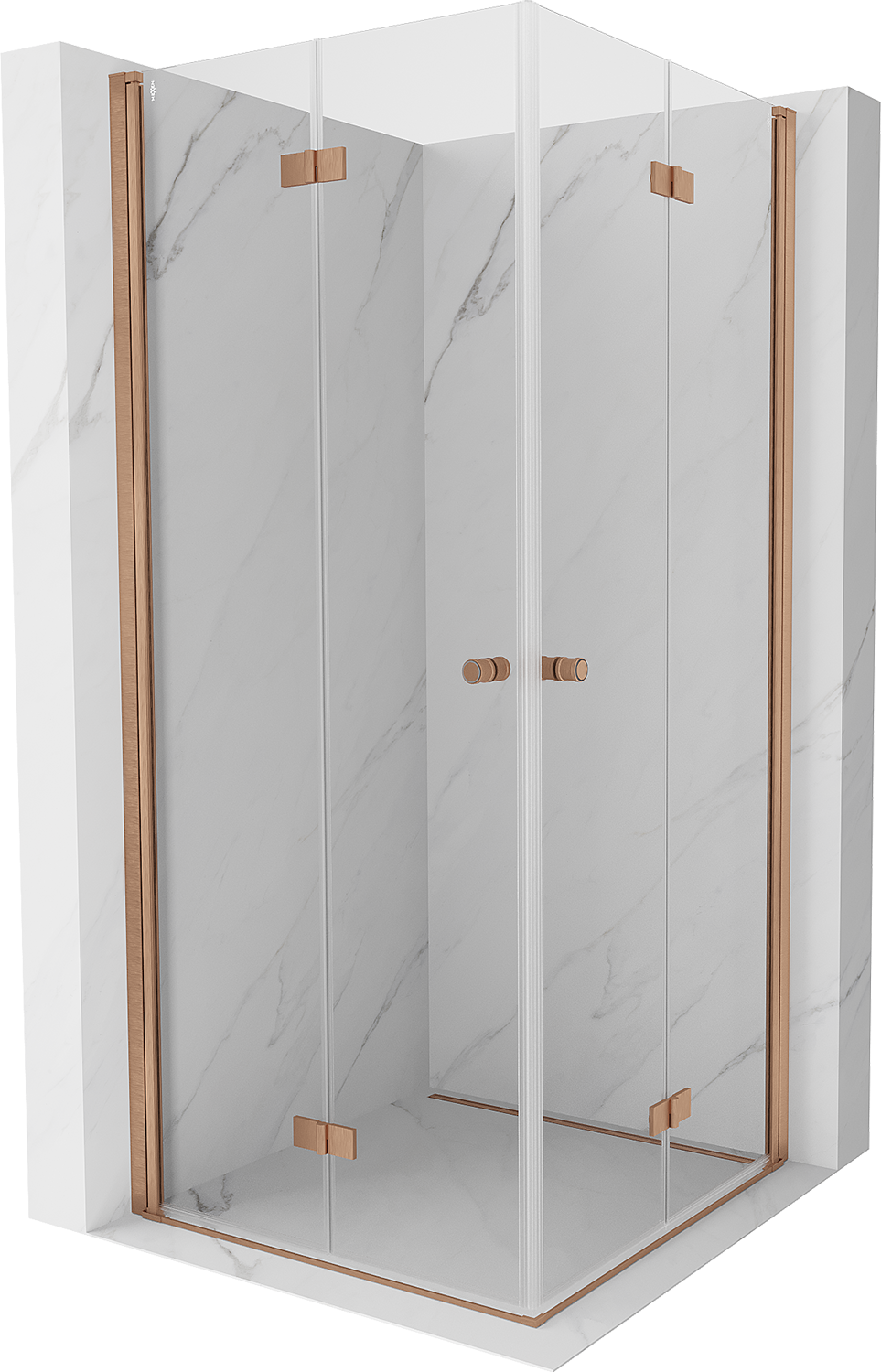 Mexen Mist-F Duo cabine de douche pliable 85 x 85 cm, transparent, cuivre brossé - 8A6-085L-085P-65-00