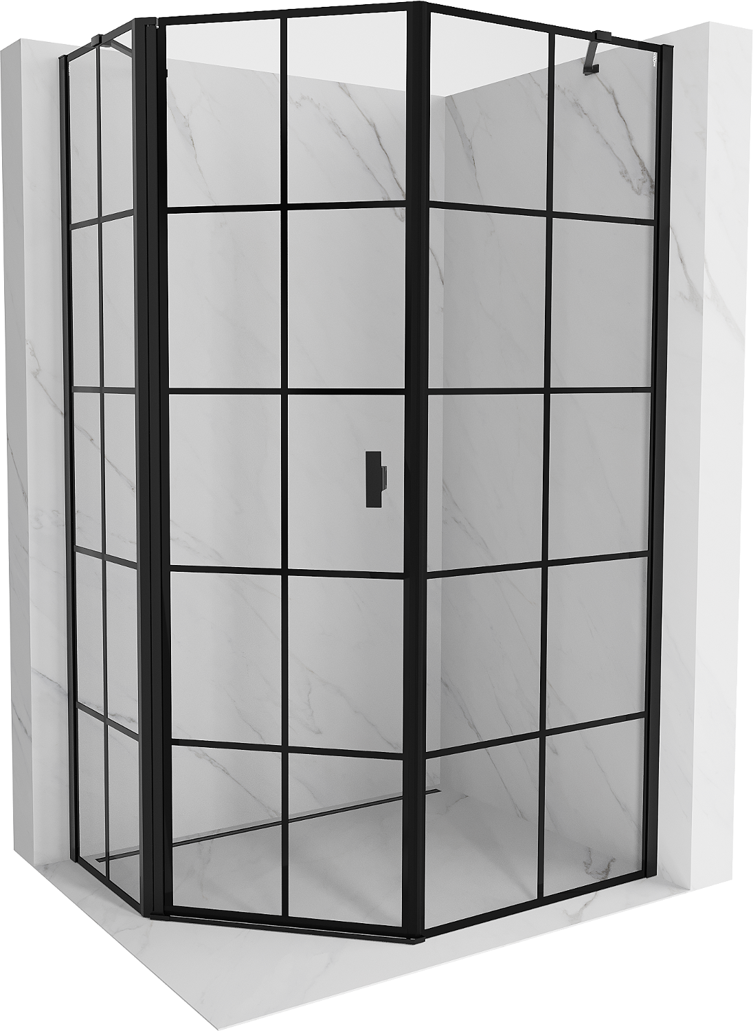 Mexen Mist cabine de douche pentagonale asymétrique pivotante gauche 90 x 100 cm, grille noire, noire - 8A8-090-100-70-77-L