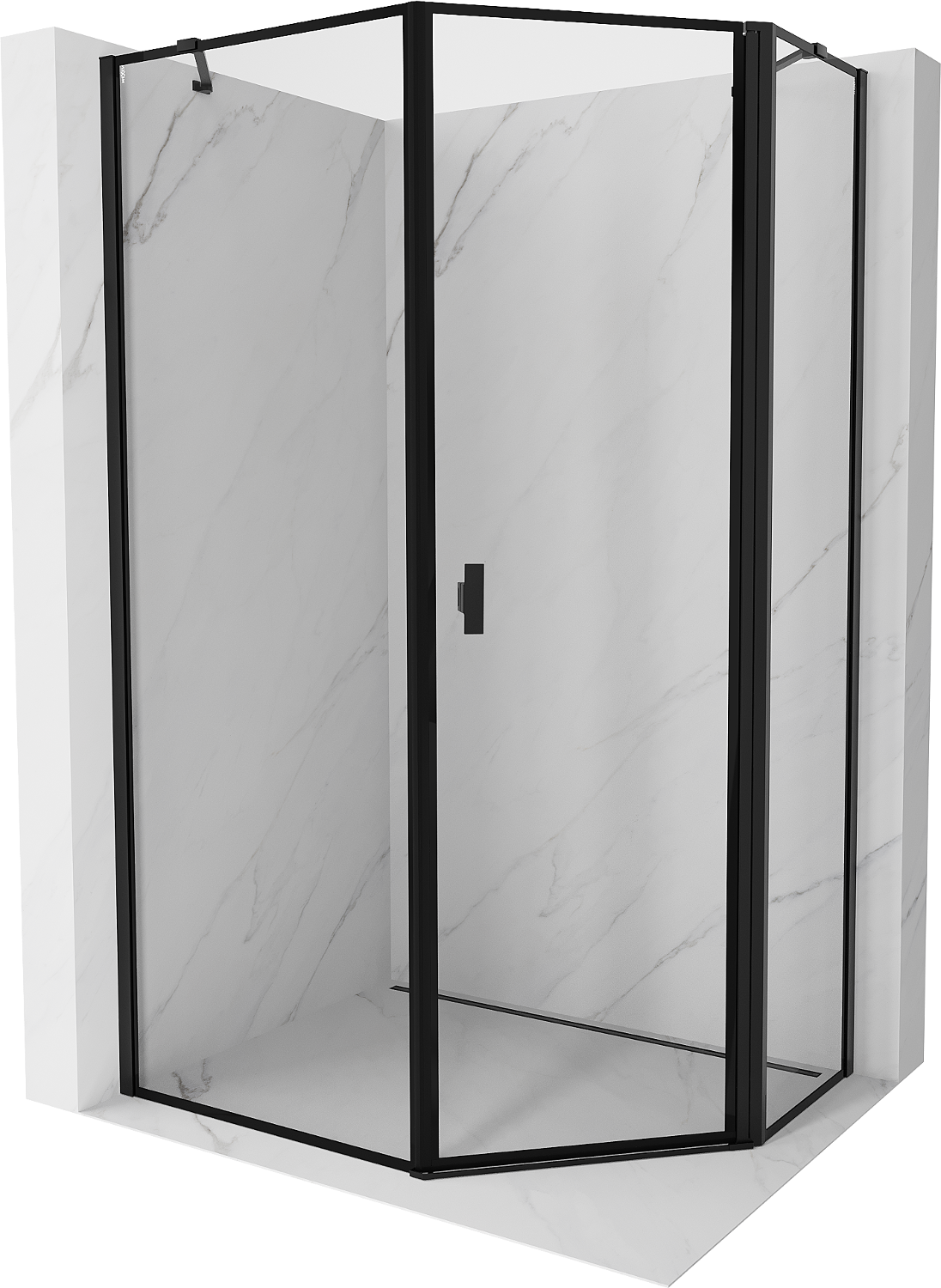 Mexen Mist cabine de douche pentagonale asymétrique pivotante droite 80 x 100 cm, cadre noir, noir - 8A8-080-100-70-70-P