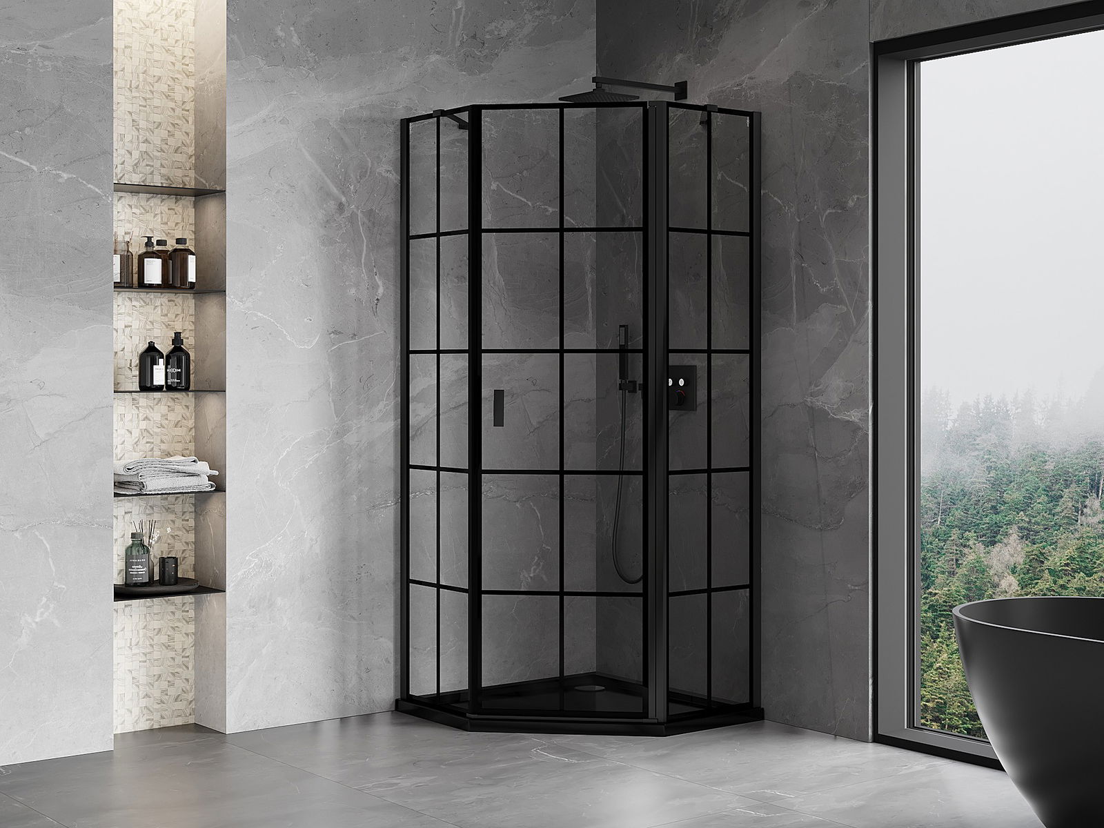 Mexen Mist cabine de douche pentagonale à charnière droite 80 x 80 cm, grille noire, noir - 8A8-080-080-70-77-P