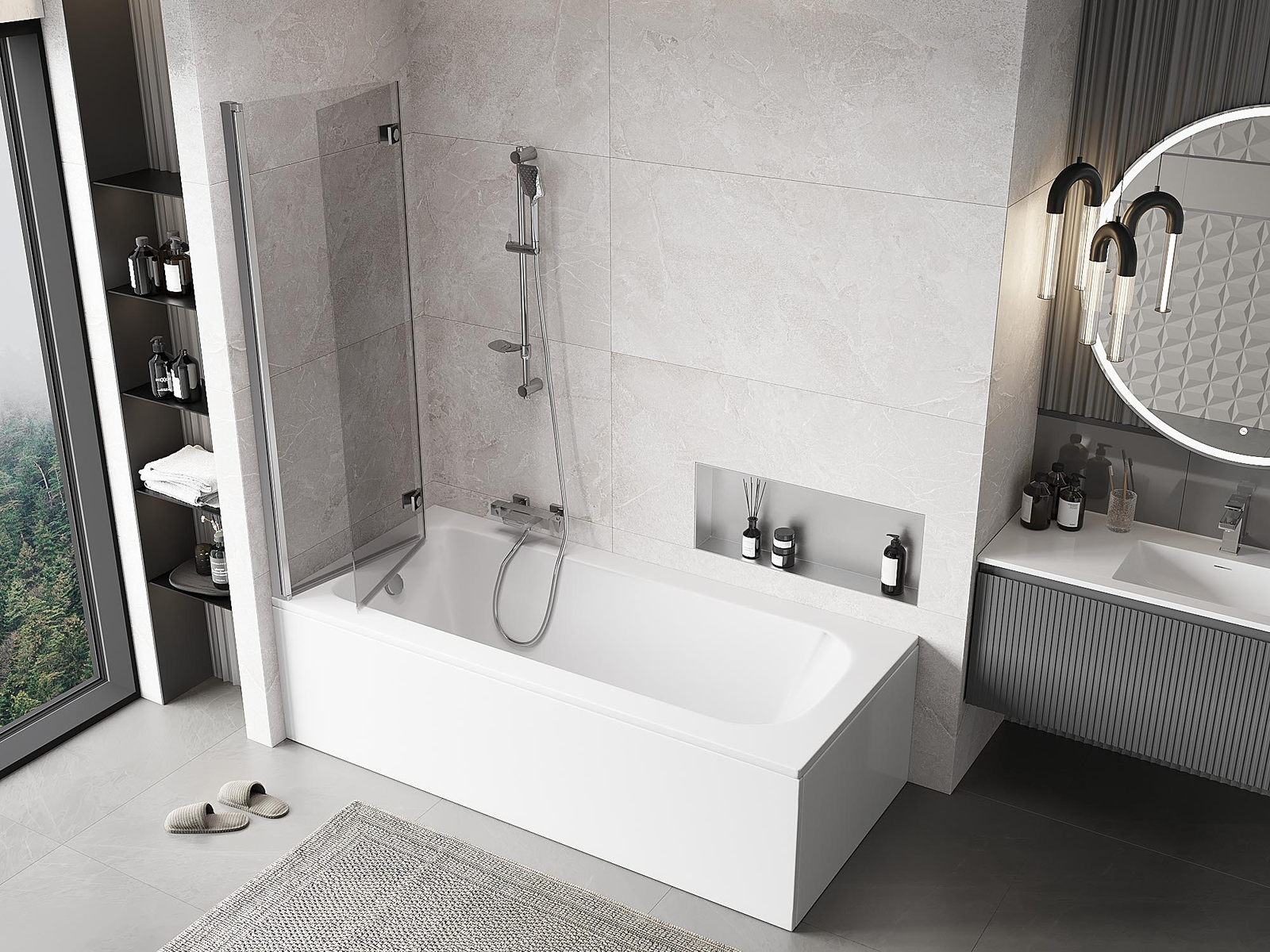 Protection efficace contre le débordement d'eau pendant le bain. Le pare-douche est équipé de joints qui s'adaptent parfaitement à la surface du verre et au bord de la baignoire. Une solution fonctionnelle assurant sécurité et facilité d'entretien.