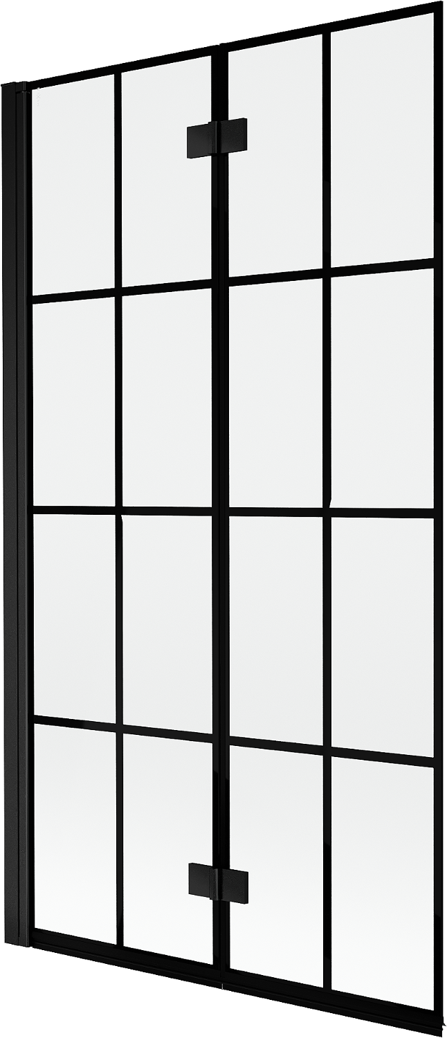 Paravent composé de deux battants pouvant être repliés. Cette solution permet d'économiser plus d'espace dans la salle de bain et de profiter librement du reste de l'espace lorsque nous n'utilisons pas la zone de bain.