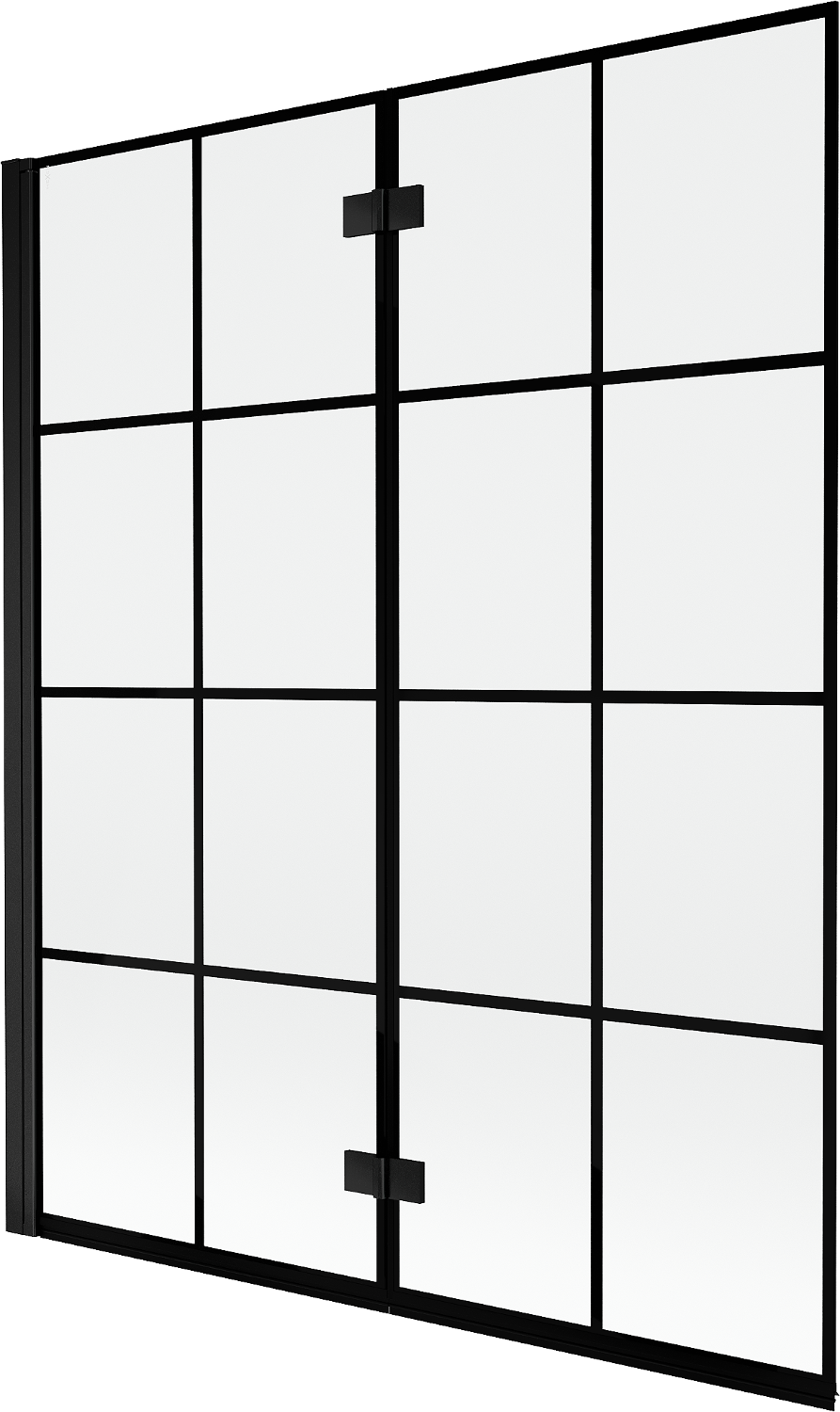 Paravent composé de deux battants pouvant être repliés. Cette solution permet d'économiser plus d'espace dans la salle de bain et de profiter librement du reste de l'espace lorsque nous n'utilisons pas la zone de bain.