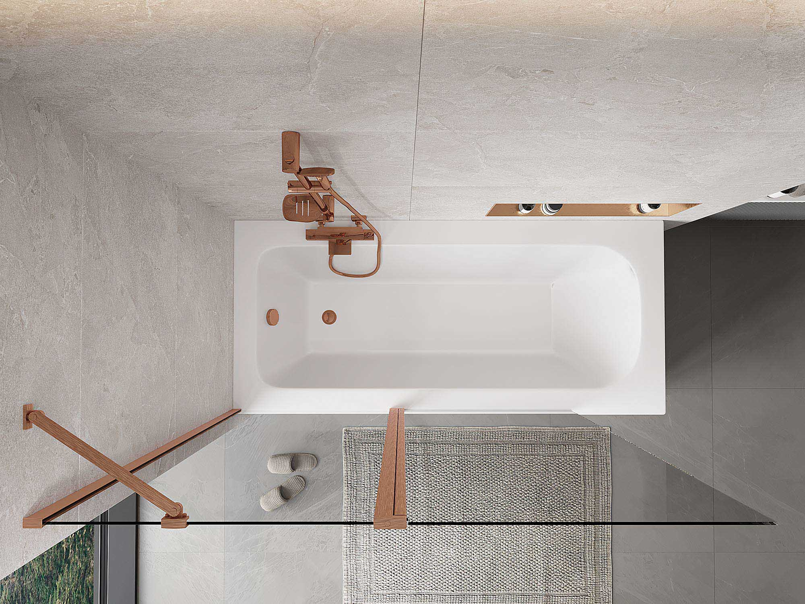 Paravent composé de deux battants pouvant être repliés. Cette solution permet d'économiser plus d'espace dans la salle de bain et de profiter librement du reste de l'espace lorsque nous n'utilisons pas la zone de bain.