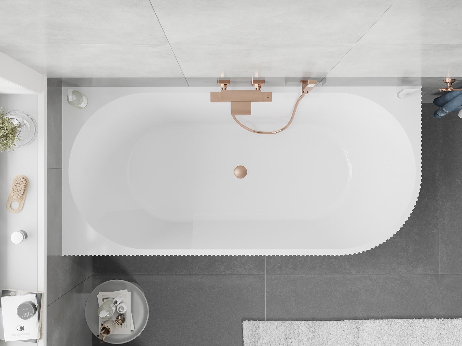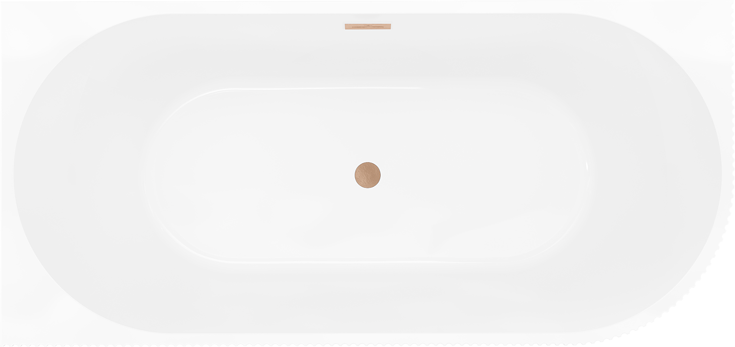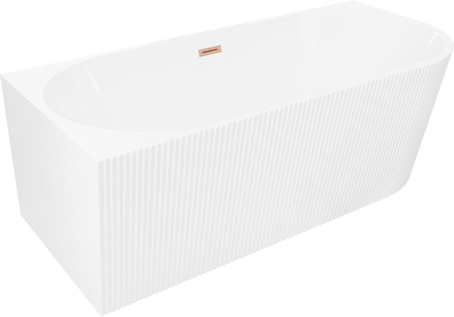 Mexen Silo baignoire îlot d'angle gauche rainurée 150 x 75 cm, blanche, trop-plein cuivre brossé - 52891507500L-65