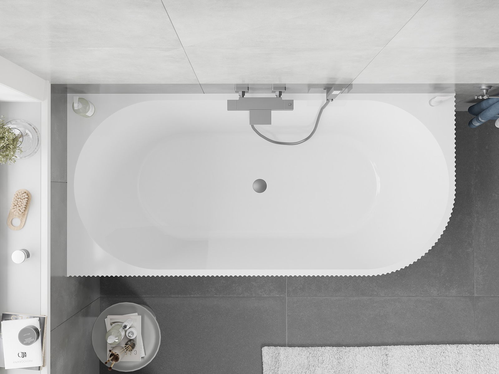 Mexen Silo baignoire îlot d'angle gauche rainurée 150 x 75 cm, blanche, trop-plein gun metal - 52891507500L-95