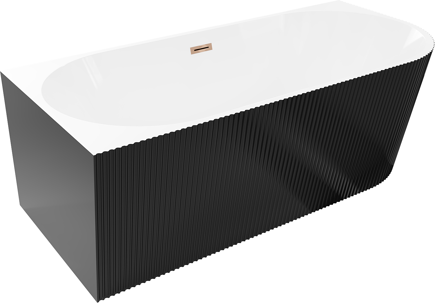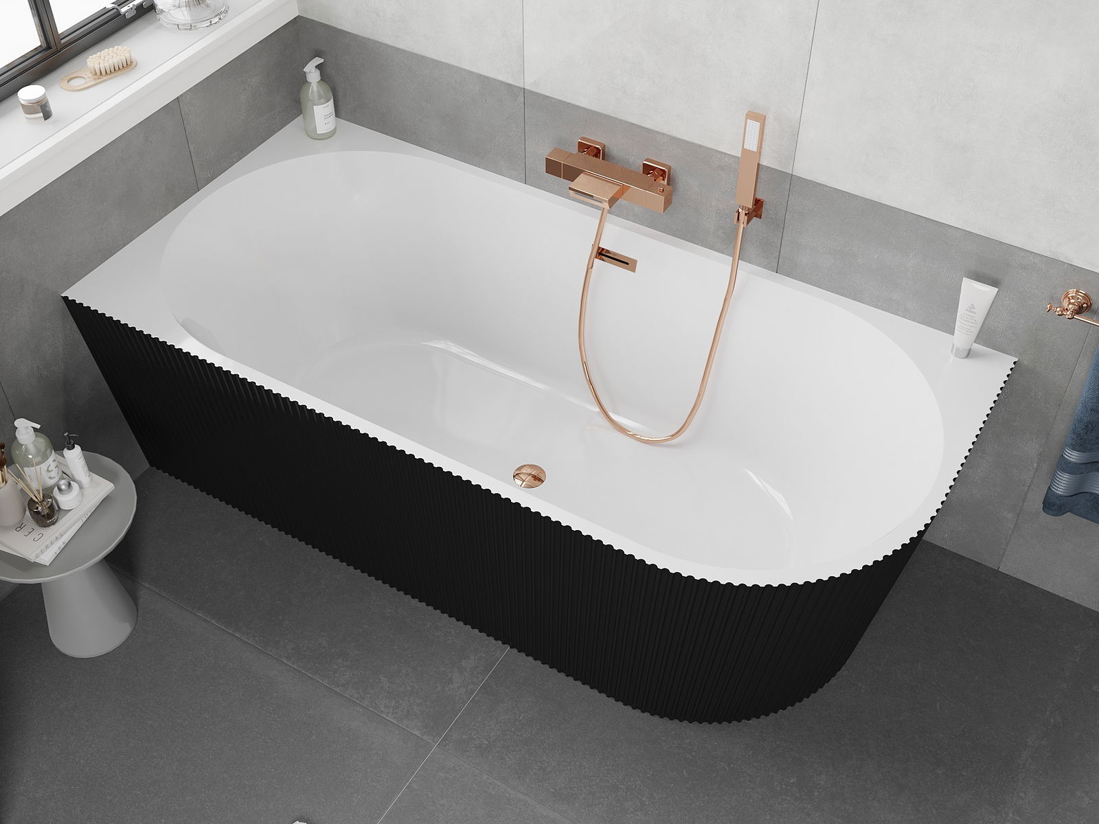 Mexen Silo baignoire autoportante d'angle gauche rainurée 150 x 75 cm, blanc/noir, trop-plein or rose - 52891507575L-60