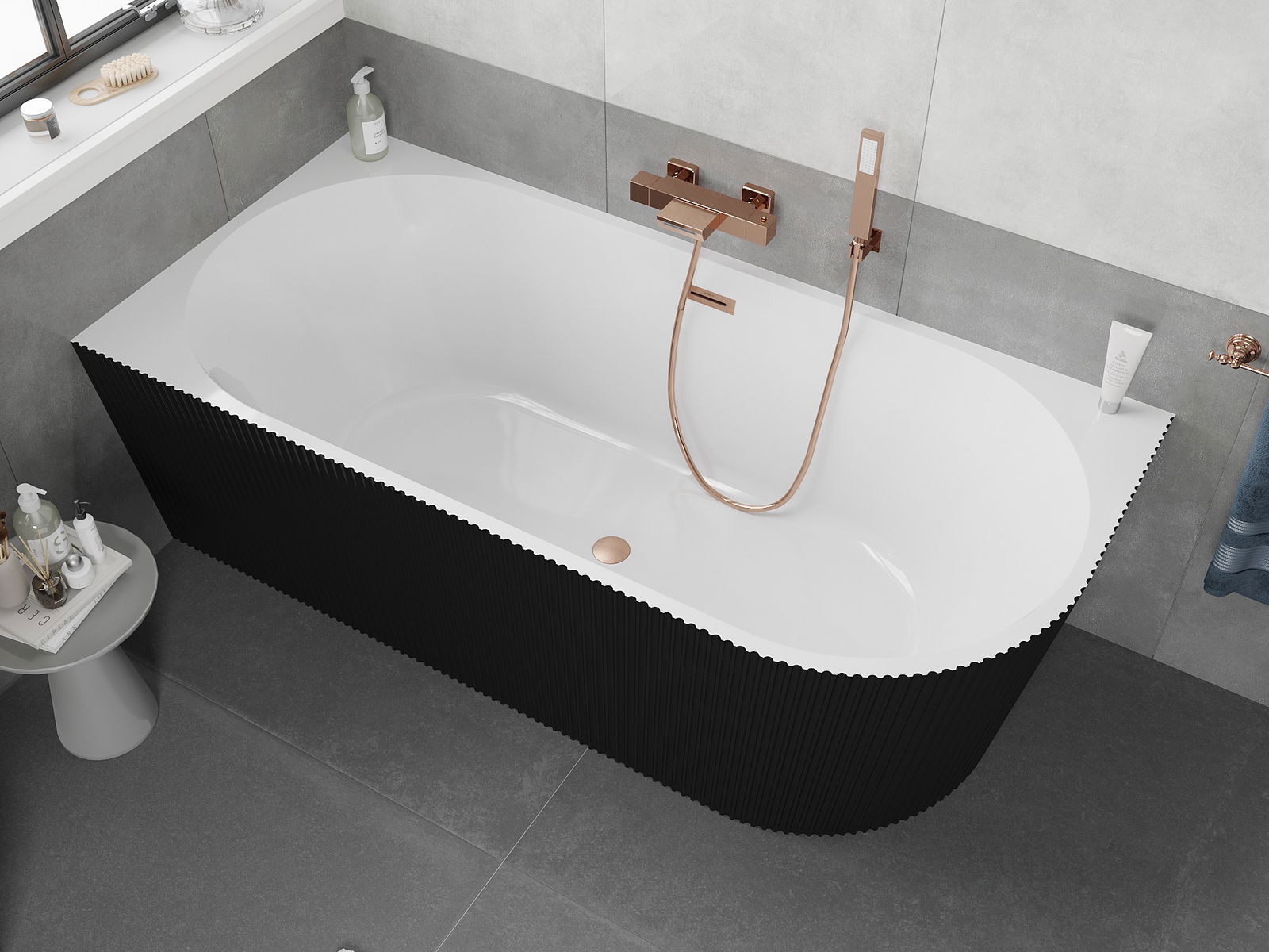 Mexen Silo baignoire îlot d'angle gauche cannelée 150 x 75 cm, blanc/noir, trop-plein cuivre brossé - 52891507575L-65